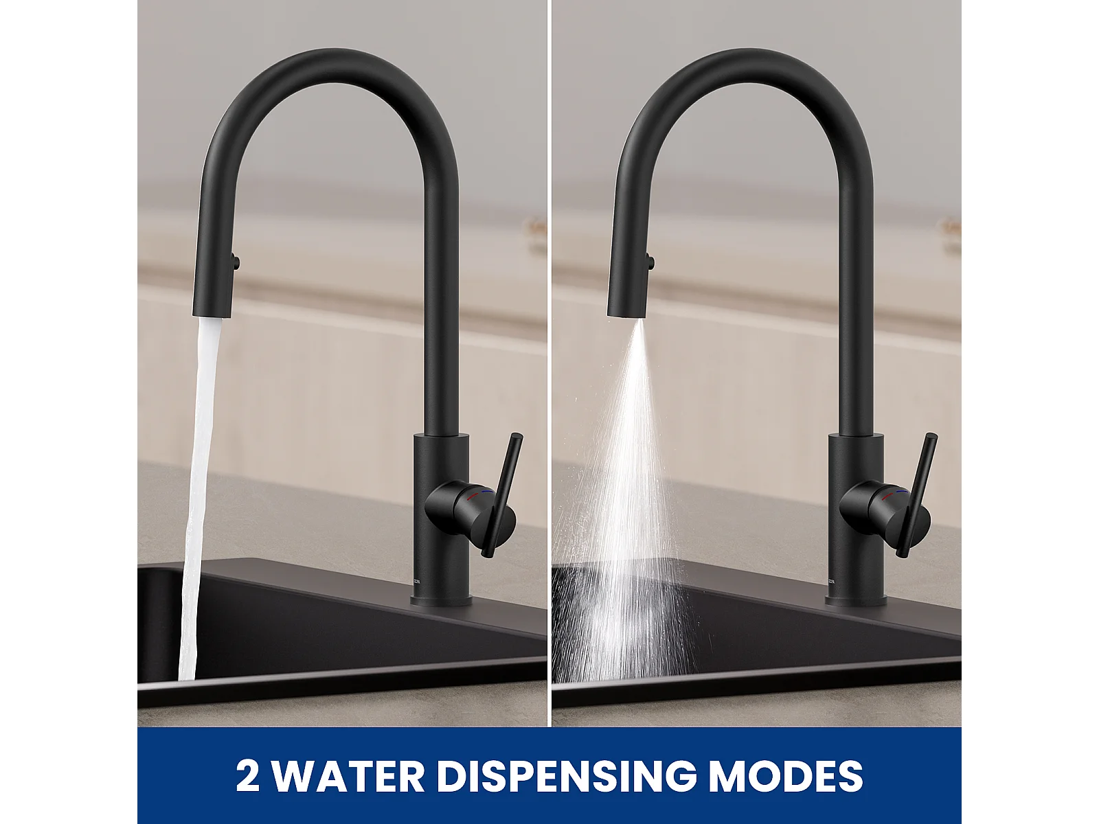 Keukenmengkraan Zwart met HanddoucheUitschuifbaar, Keukenkraan met 2 Jets, 360° Draaibare Spoelbakmengkraan,Warm en Koud Water Gootsteenkraan