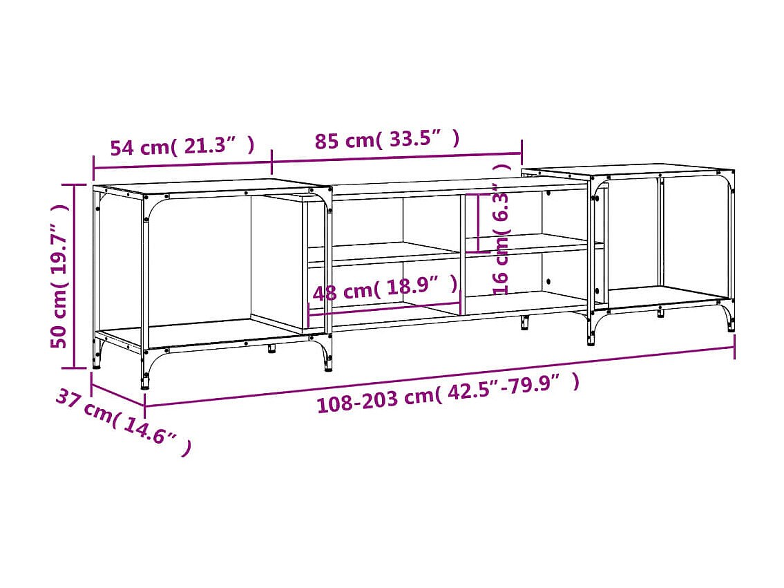 Celorna Tv-meubel 203x37x50 cm bewerkt hout gerookt eikenkleurig