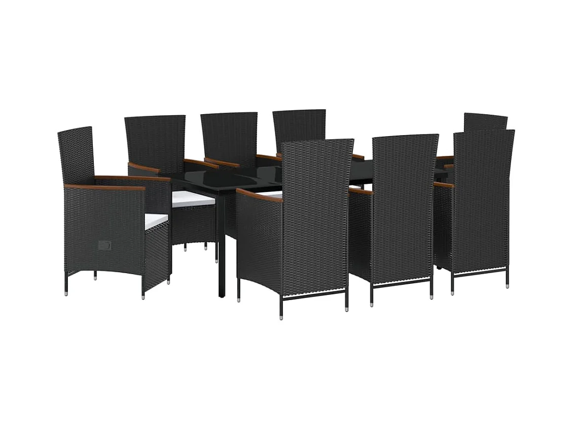 Giovanni Carlo 9-delige Tuinset met kussens poly rattan en staal zwart