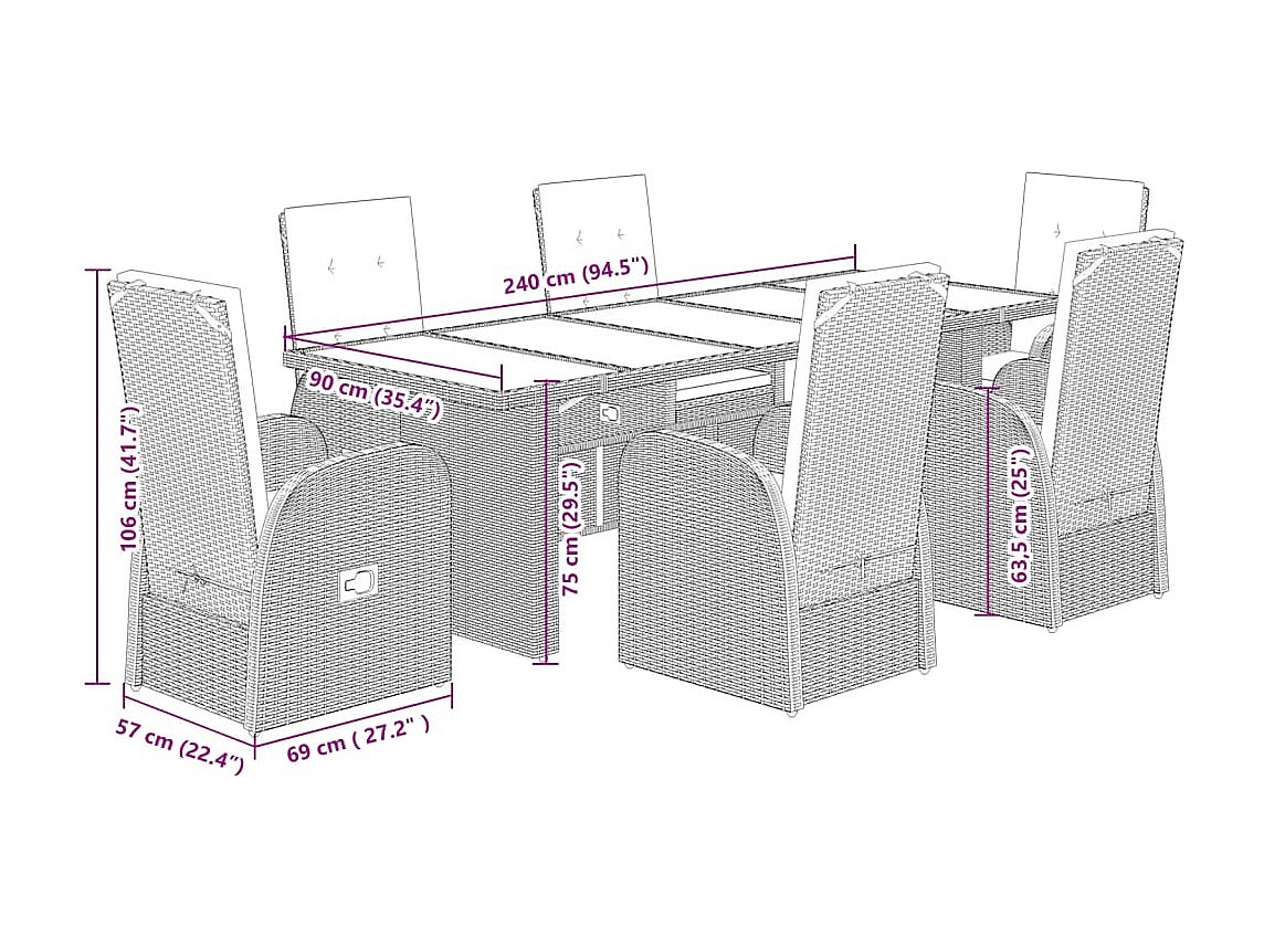 Wausau 7-delige Tuinset met kussens poly rattan grijs