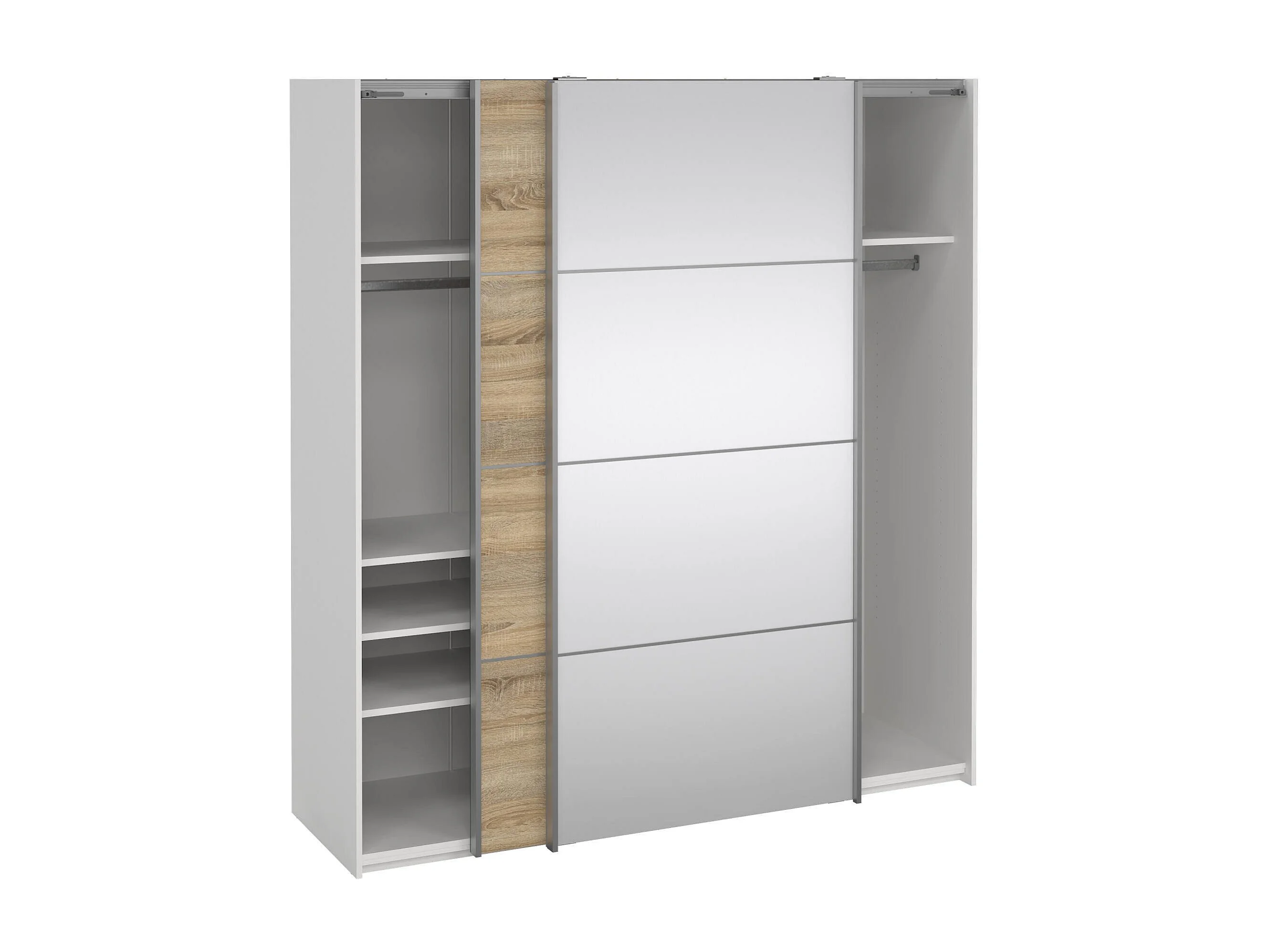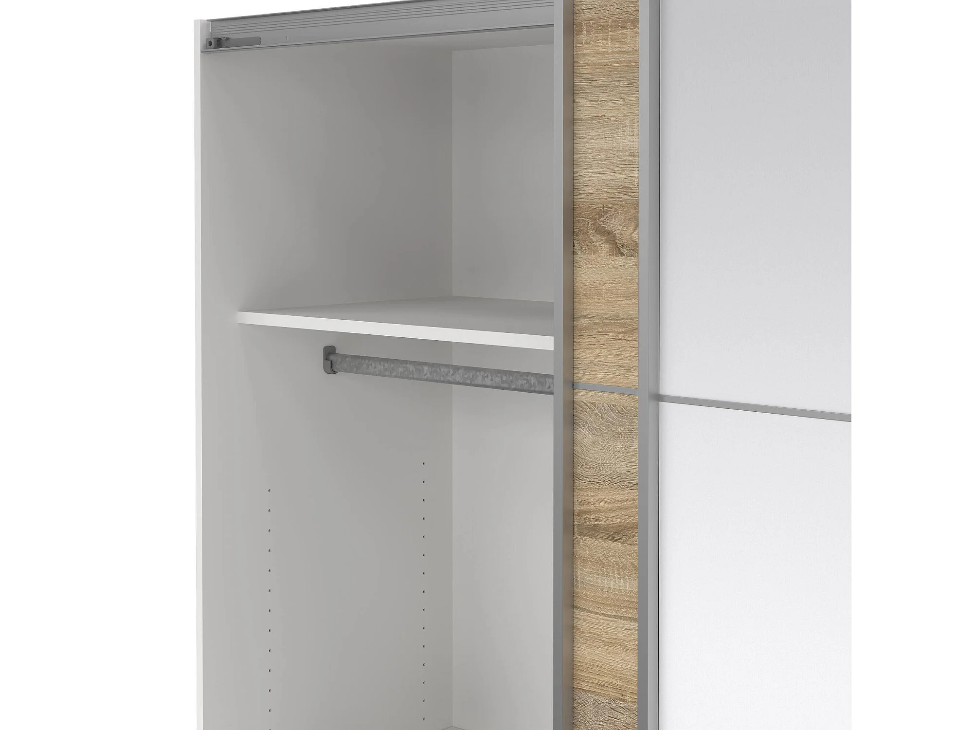 Cerreto 2-deurskast, Slaapkamermeubel, Inloopkast, Kledingkast, 182x64 h202 cm, Eiken en Wit