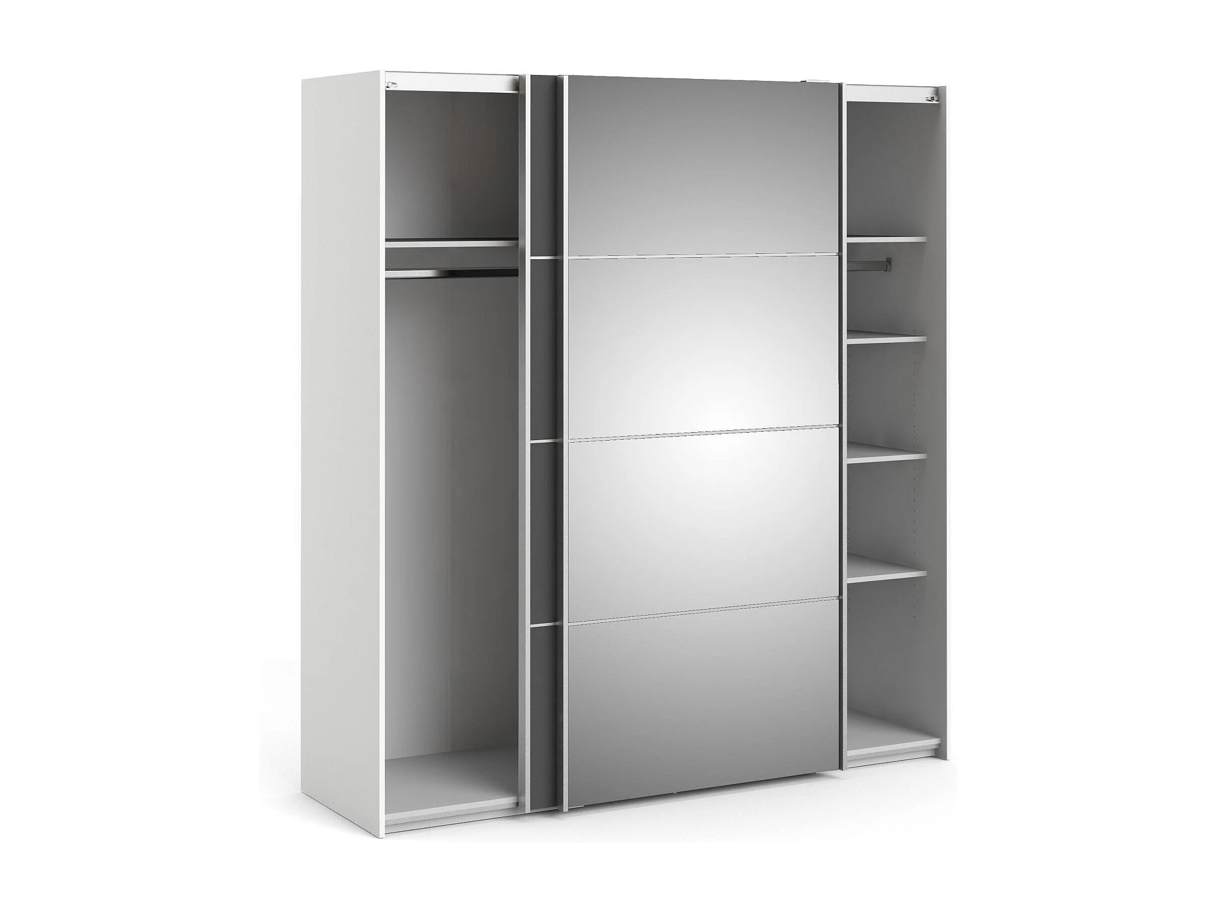 Cerreto 2-deurskast, Slaapkamermeubel, Inloopkast, Kledingkast, 182x64 h202 cm, Grijs en Wit