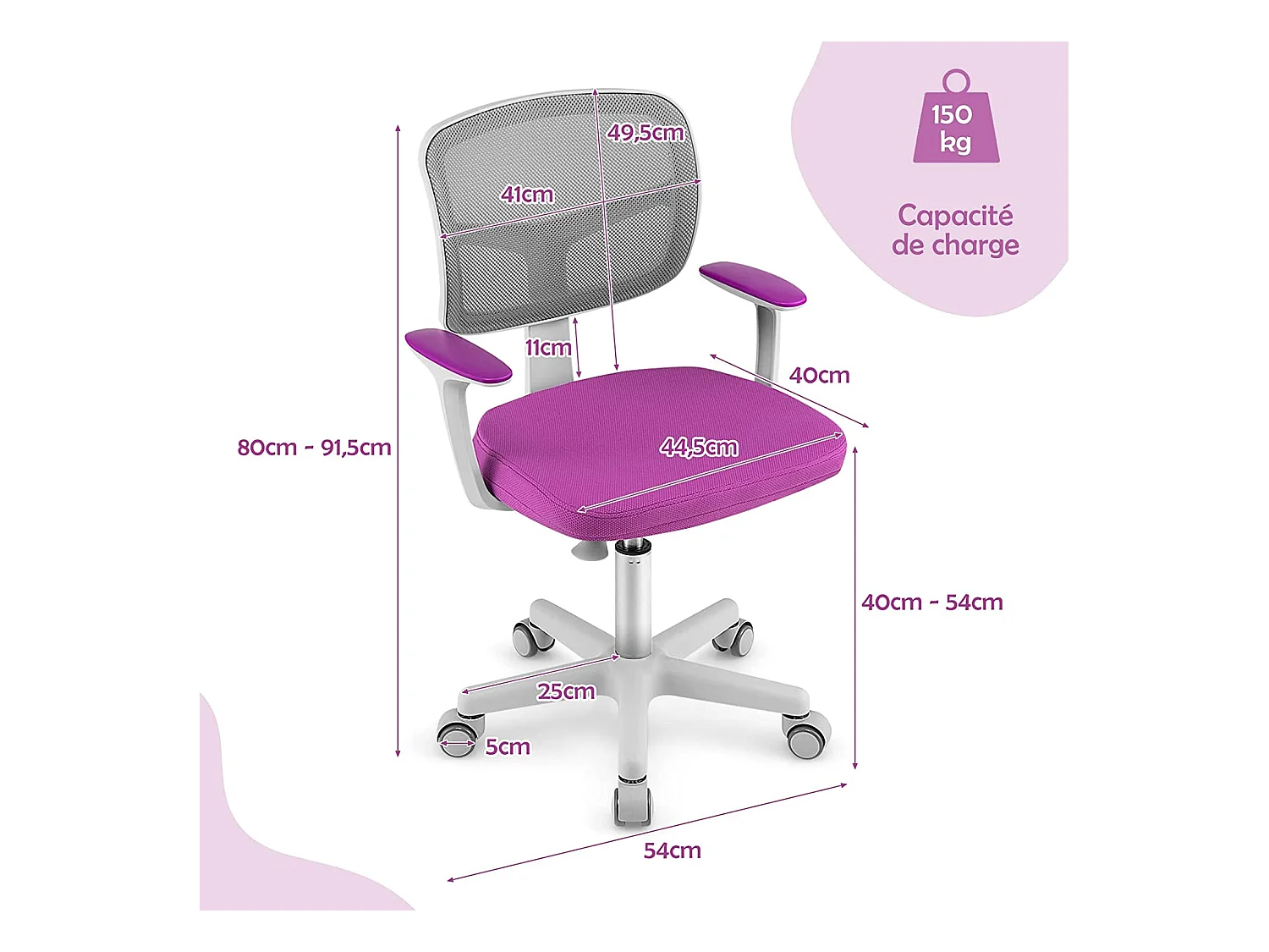 chaise de bureau à roulettes pour enfants,soutien lombaire, siège pivotant