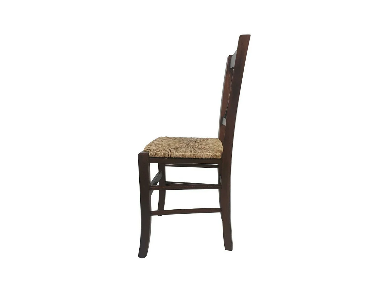 Chaise en bois de Venise croix en noyer foncé avec assise en paille x 4