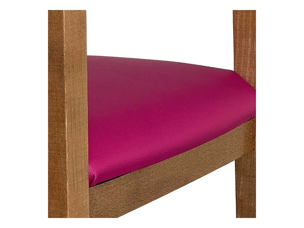 Chaise haute en bois de noyer clair avec assise en simili cuir lilas