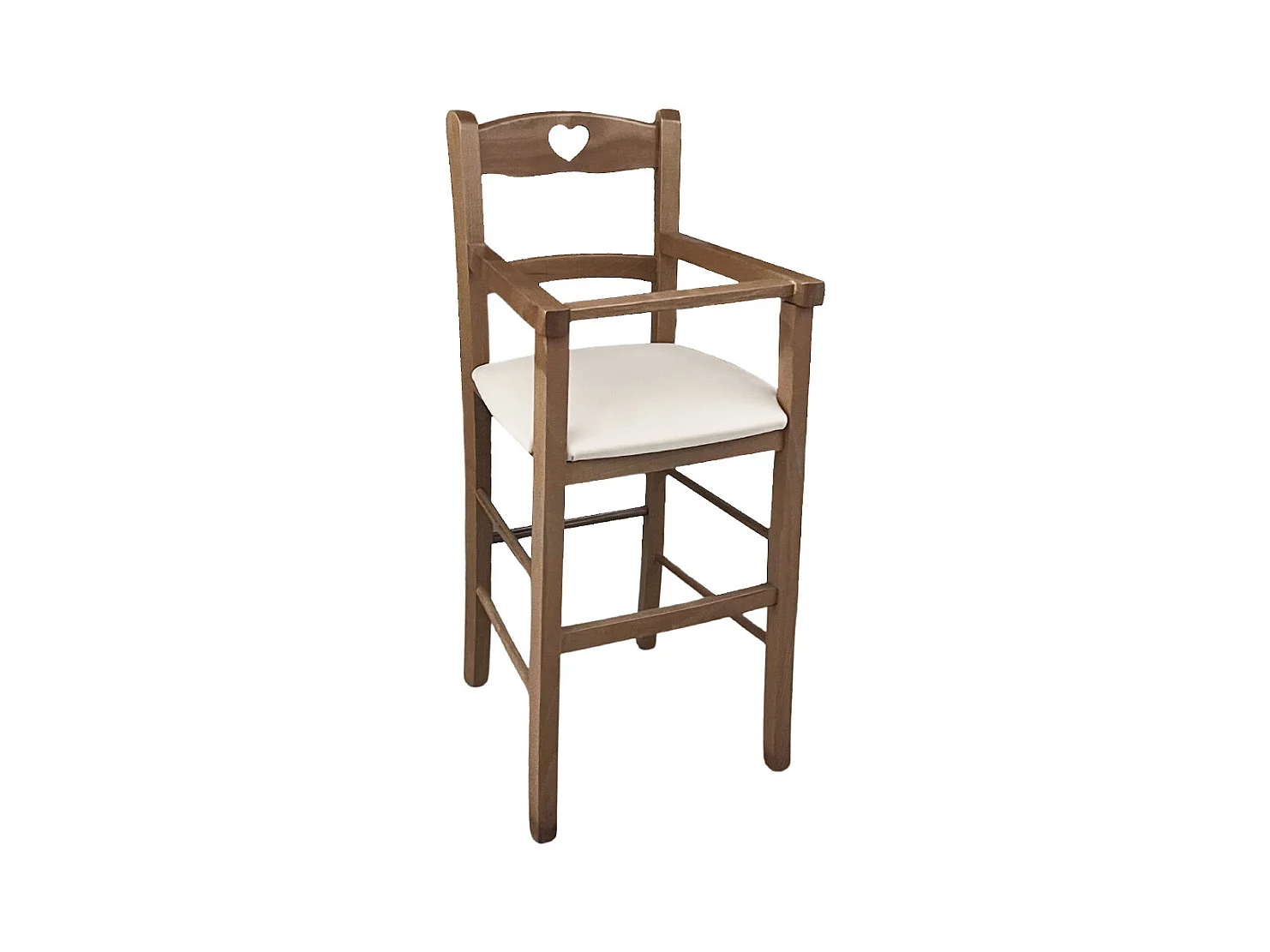 Chaise haute en bois de noyer clair avec assise rembourrée en simili cuir beige/crème