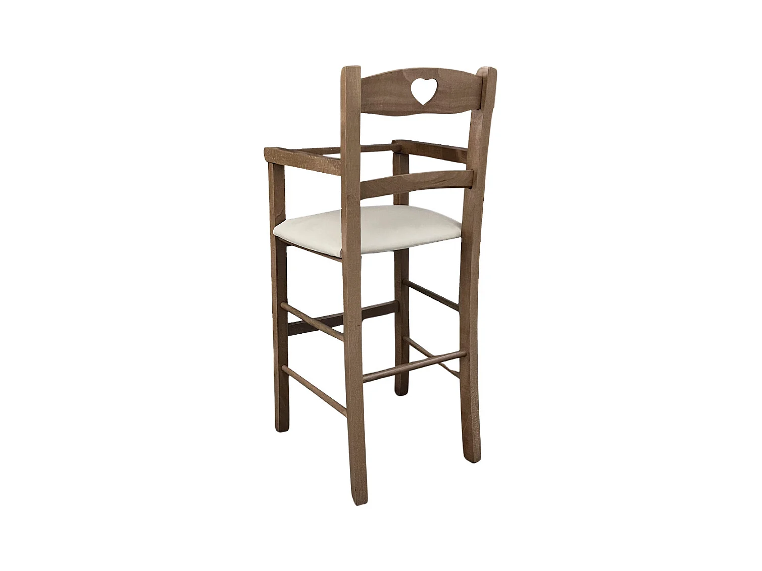 Chaise haute en bois naturel avec assise rembourrée en simili cuir gris/colombe