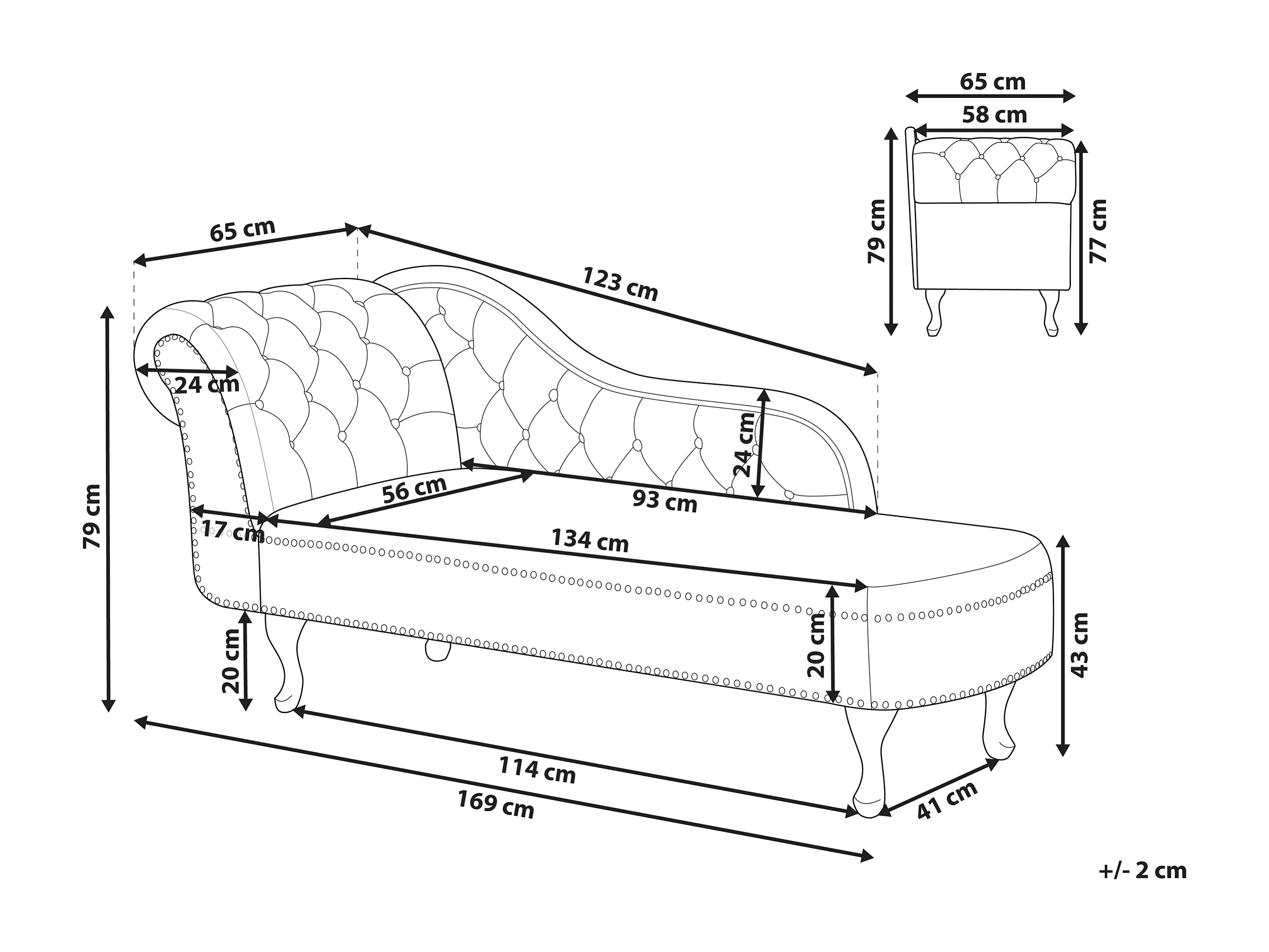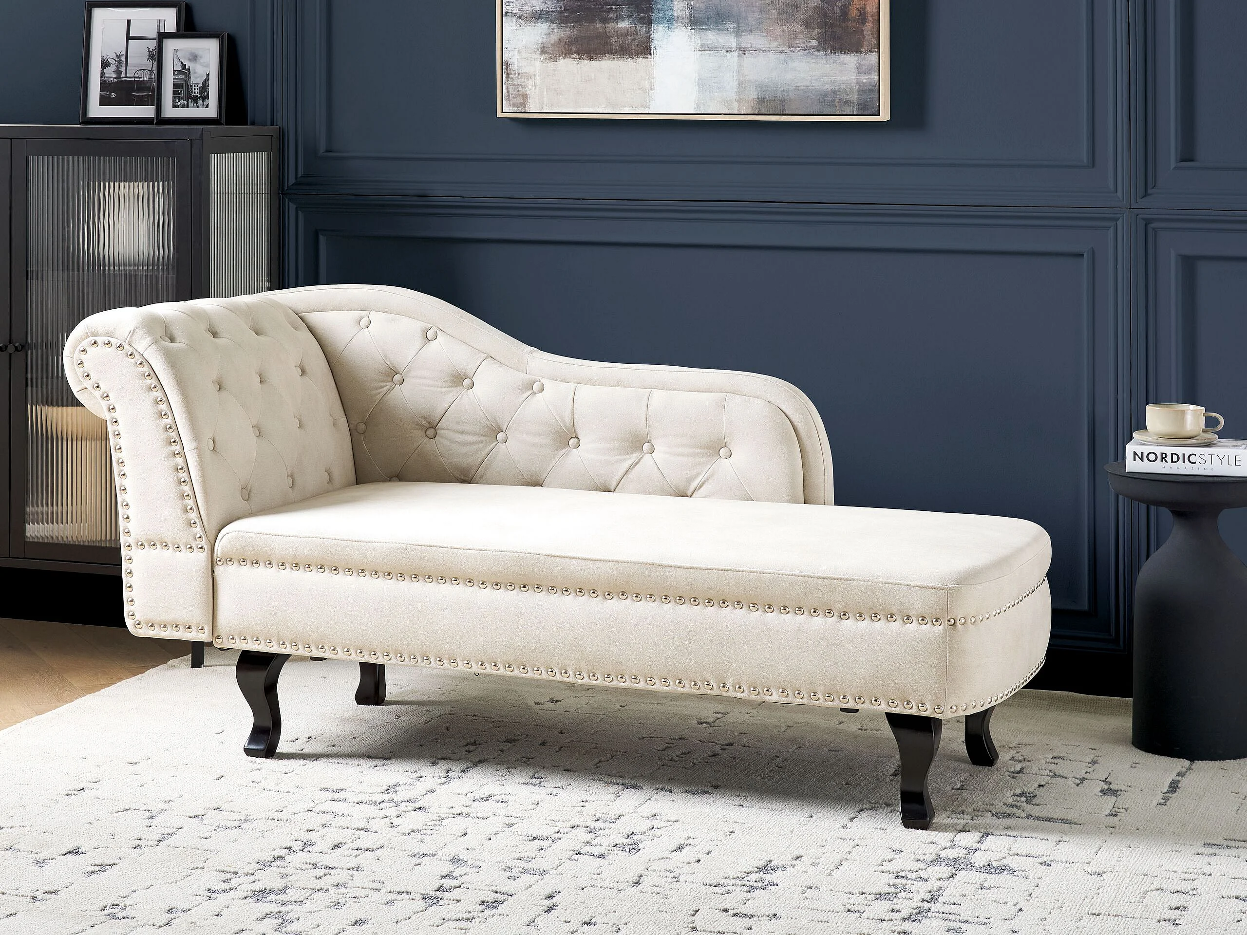 Chaise longue fluweel lichtbeige linkszijdig NIMES