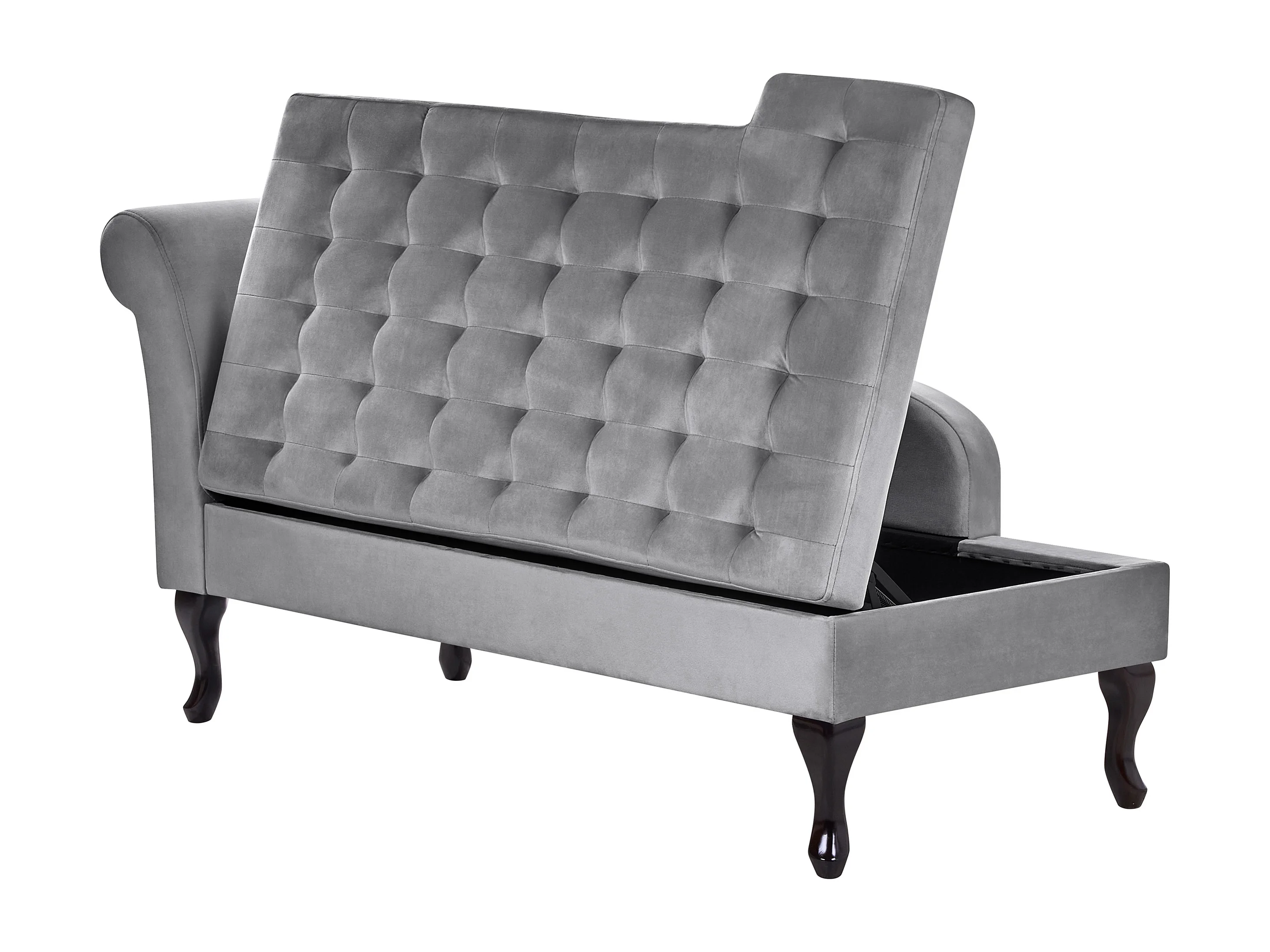 Linkszijdige chaise longue PESSAC Fluweel Lichtgrijs met opbergruimte