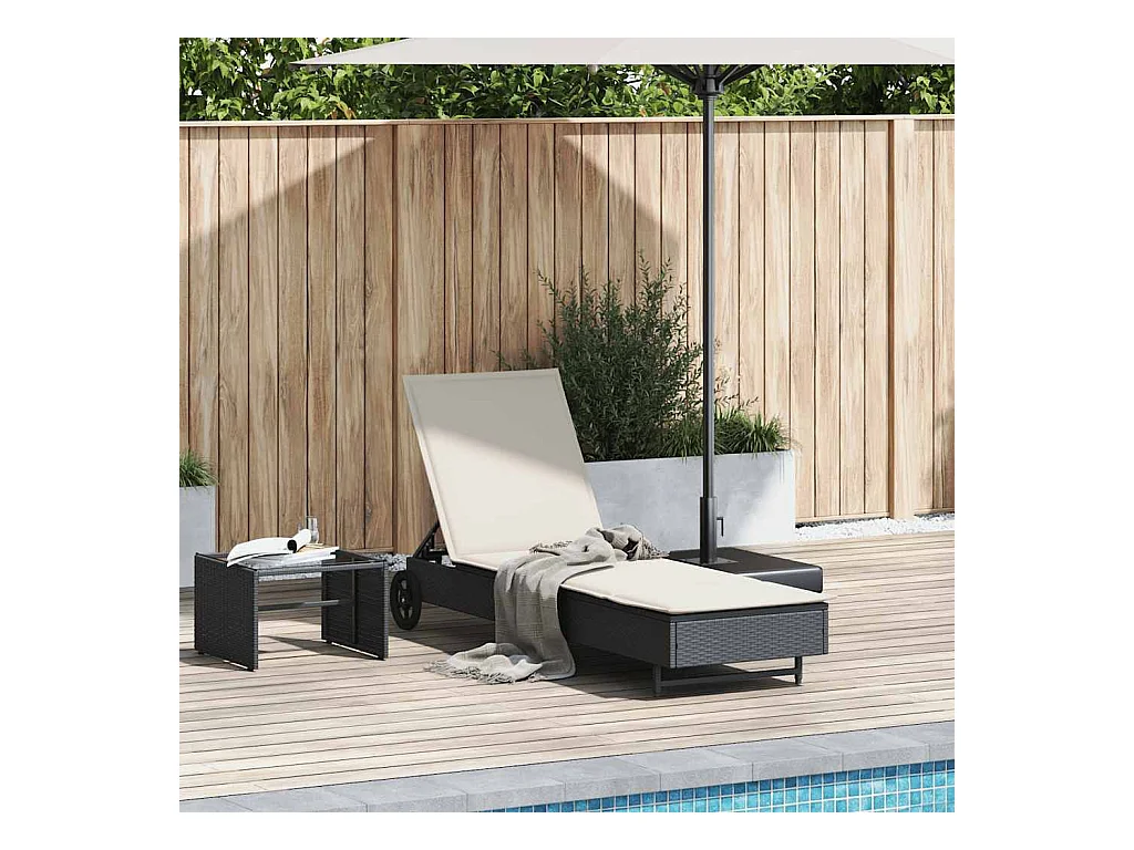 stuk ligstoel met zwarte tafel van geweven hars