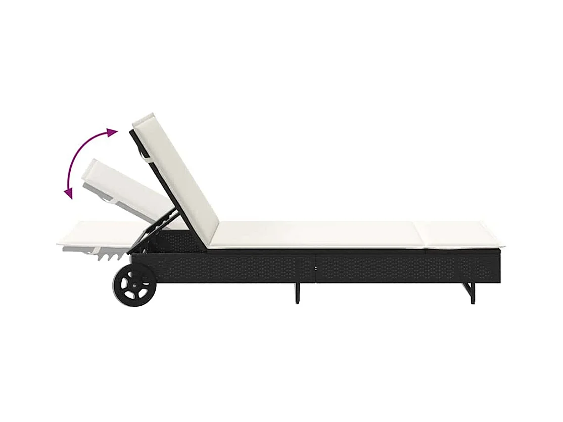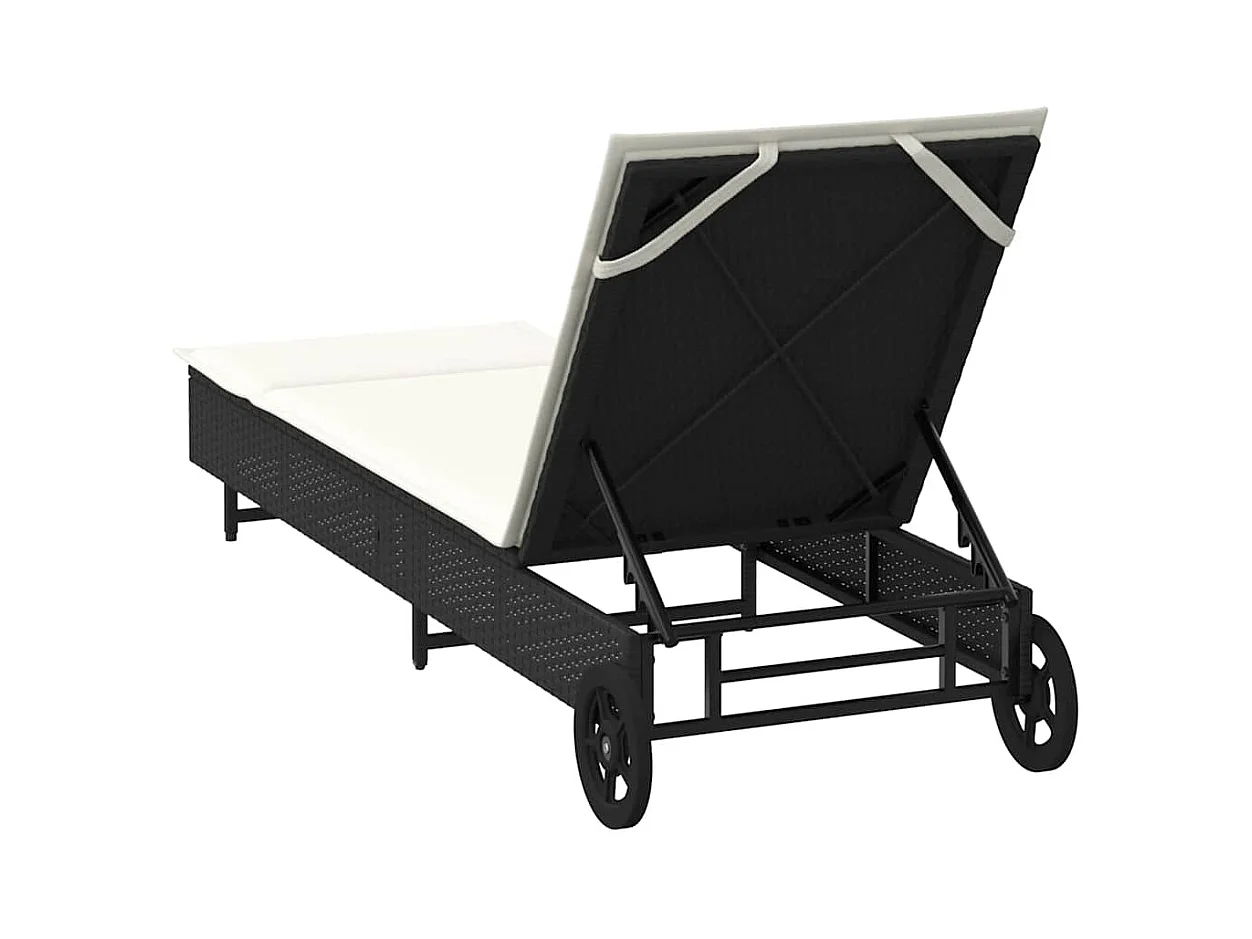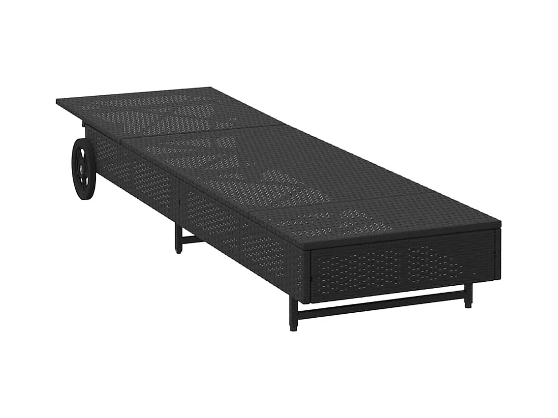 Chaise longue met wielen en zwart geweven harskussen