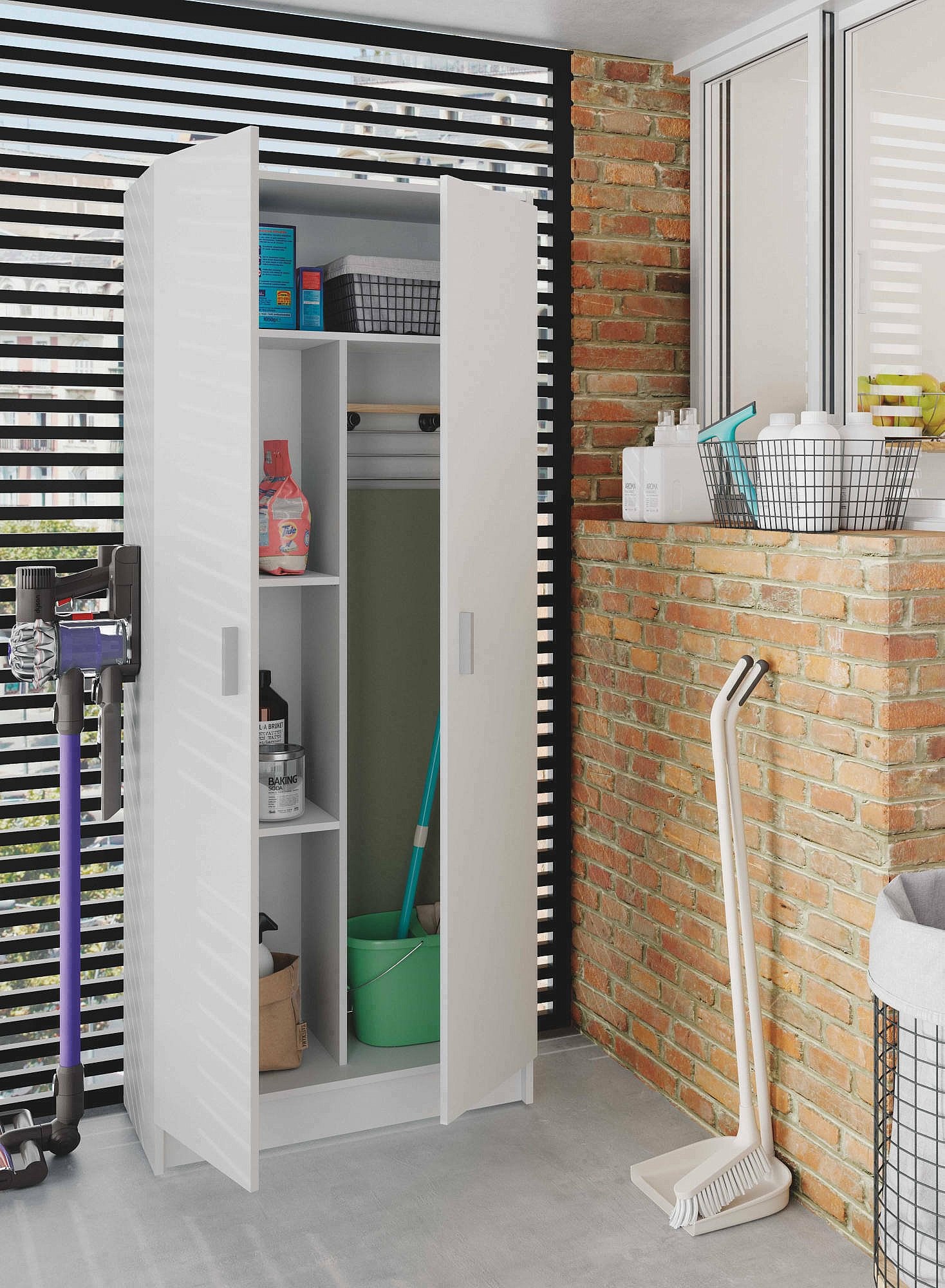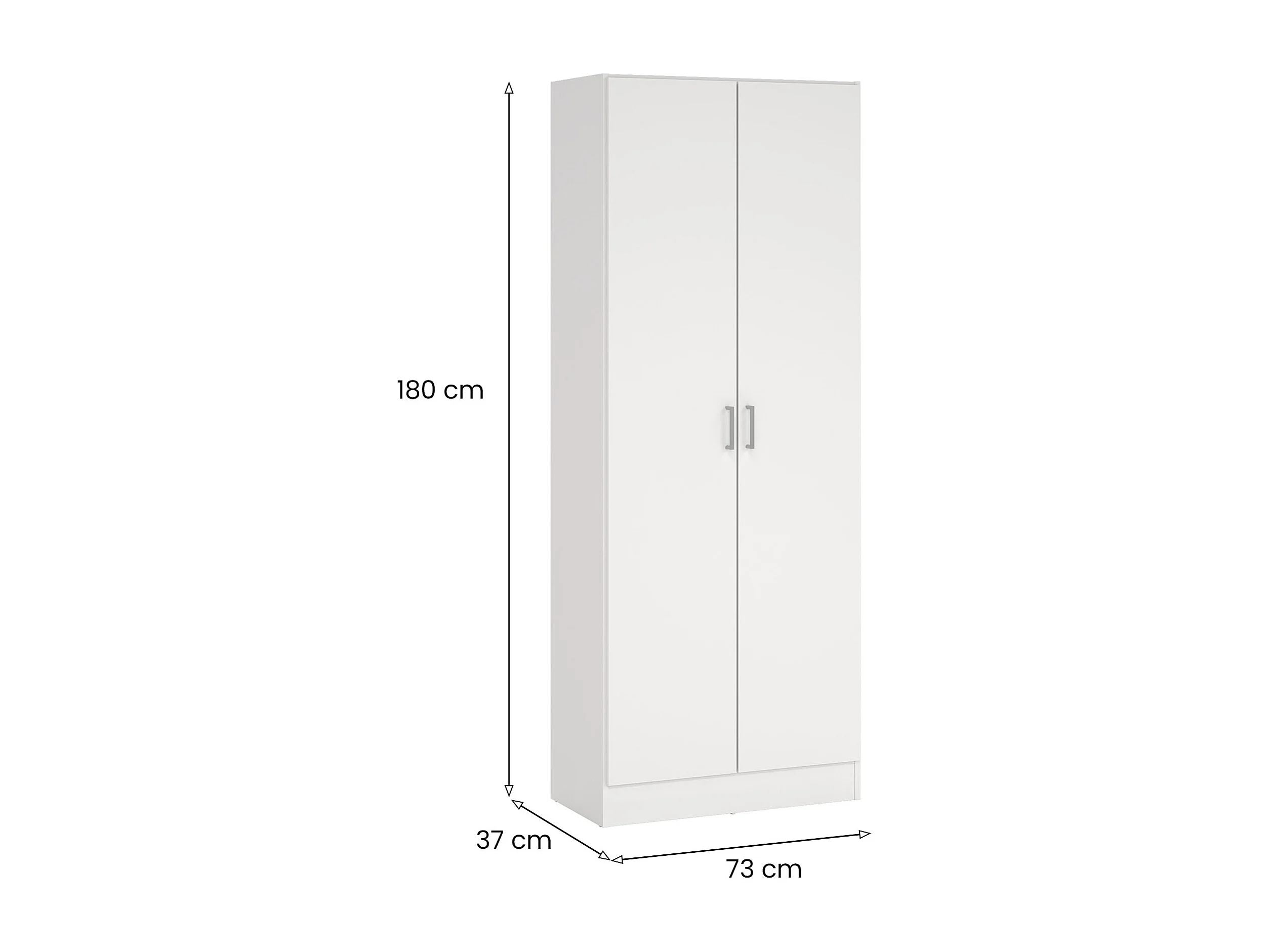 Charleston multifunctionele kledingkast, Bezemkast met 2 deuren, Schoenenrek met planken, Bezemkast, cm73x37h180 cm, Wit