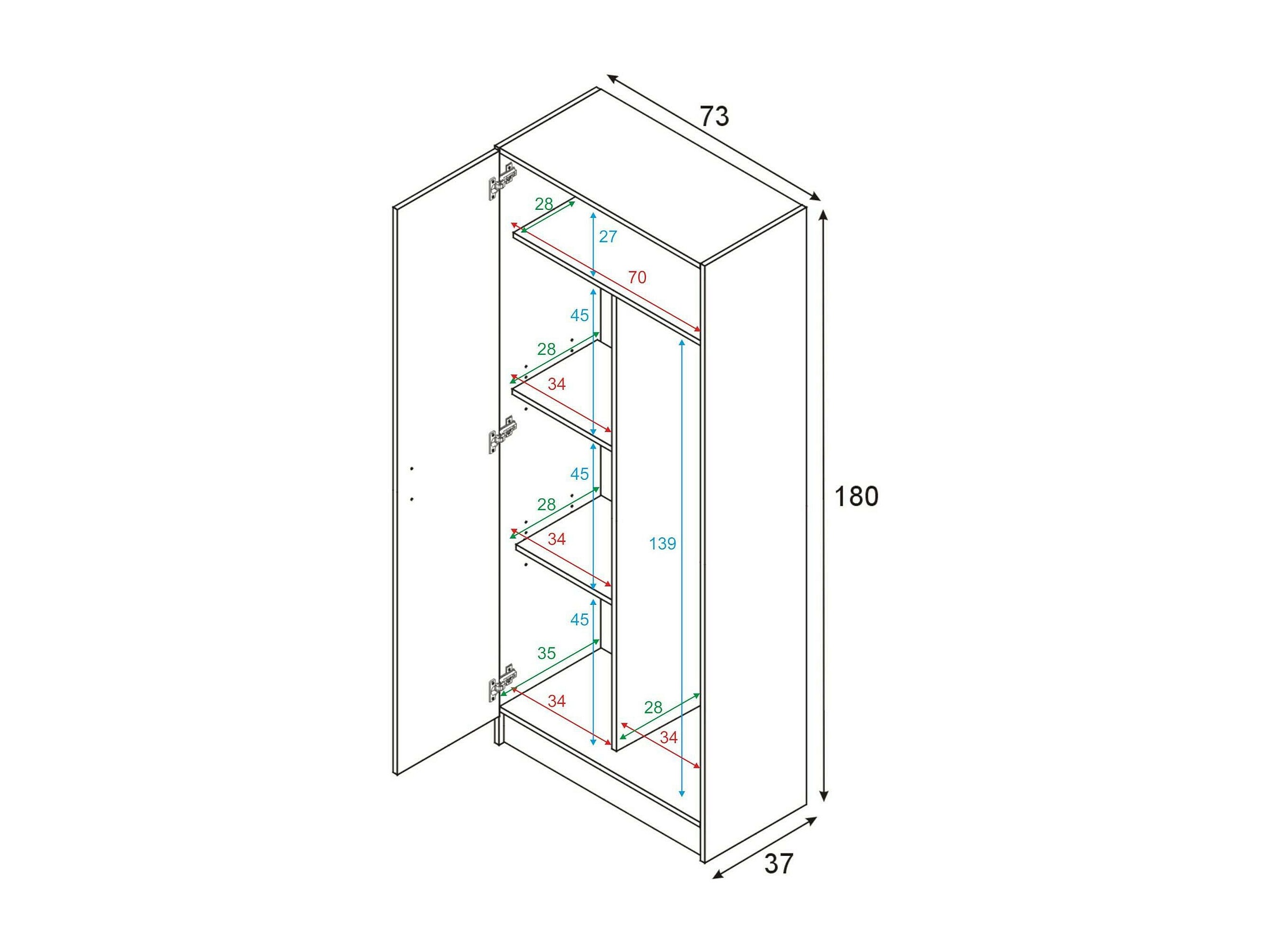 Kast met 1 deur en 4 planken 90x181 cm
