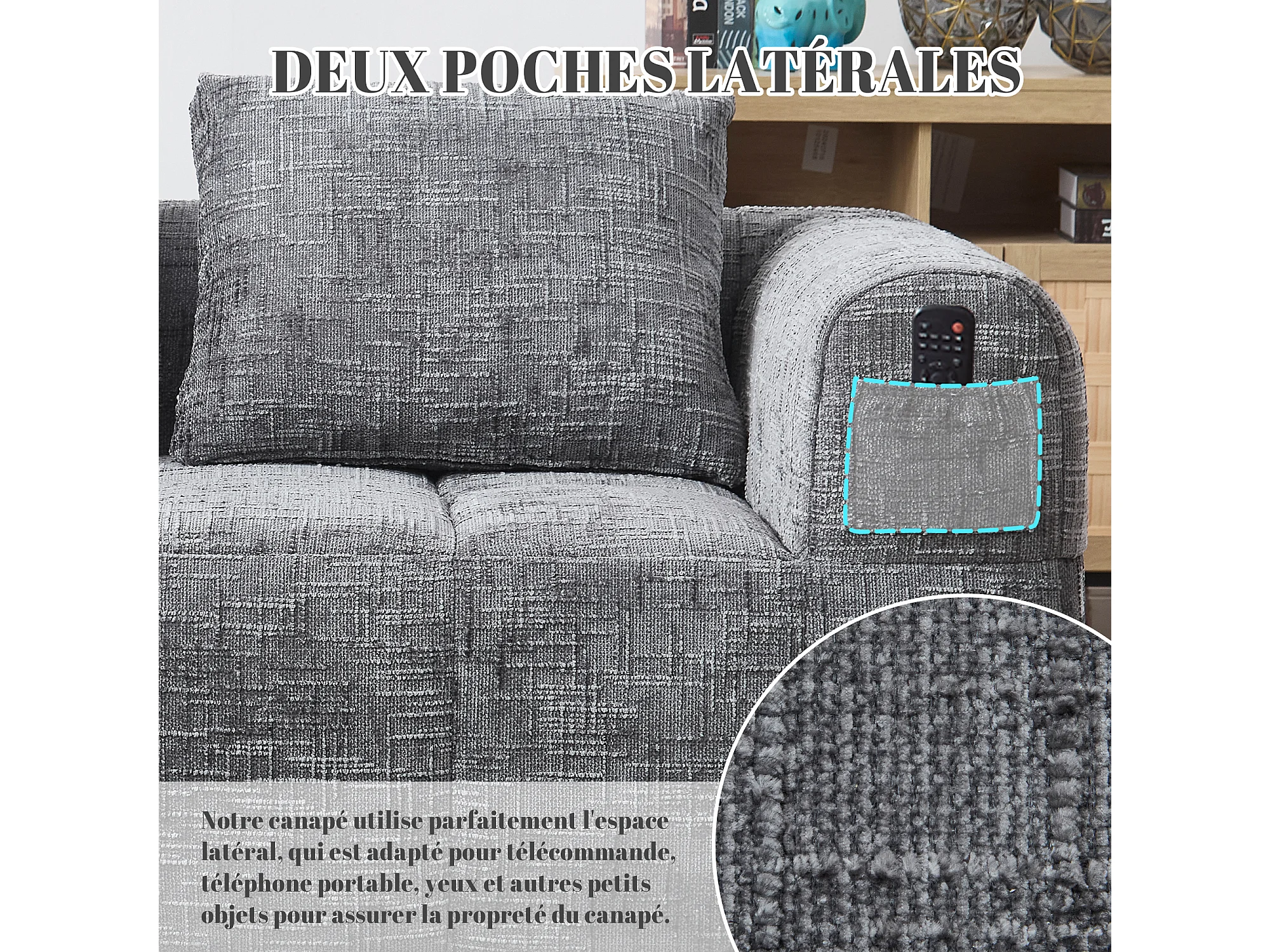 Chenille 2-zits hoekbank - hoekmodule - met opbergvak aan de zijkant - Perfect voor woonkamer en studio
