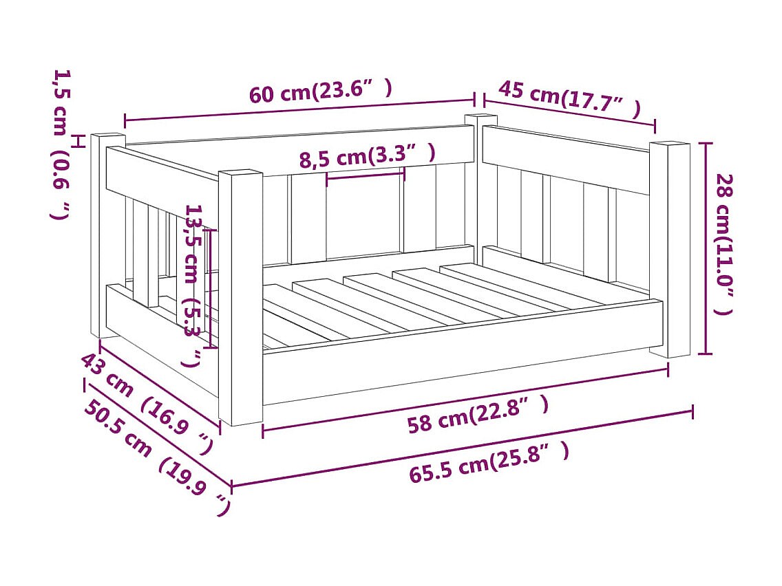 Cherryfield Hondenmand 65,5x50,5x28 cm massief grenenhout