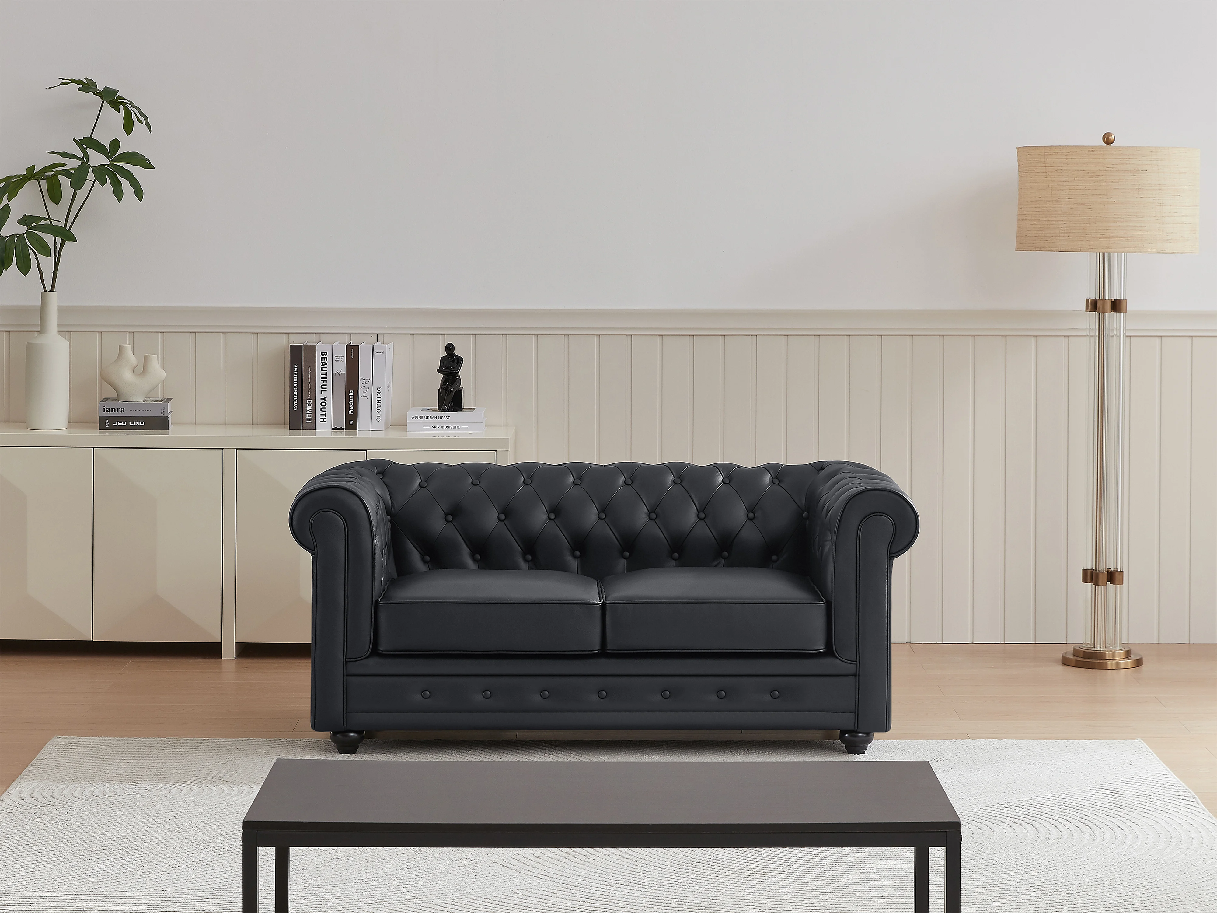 Tweezitsbank van zwart buffelleer CHESTERFIELD
