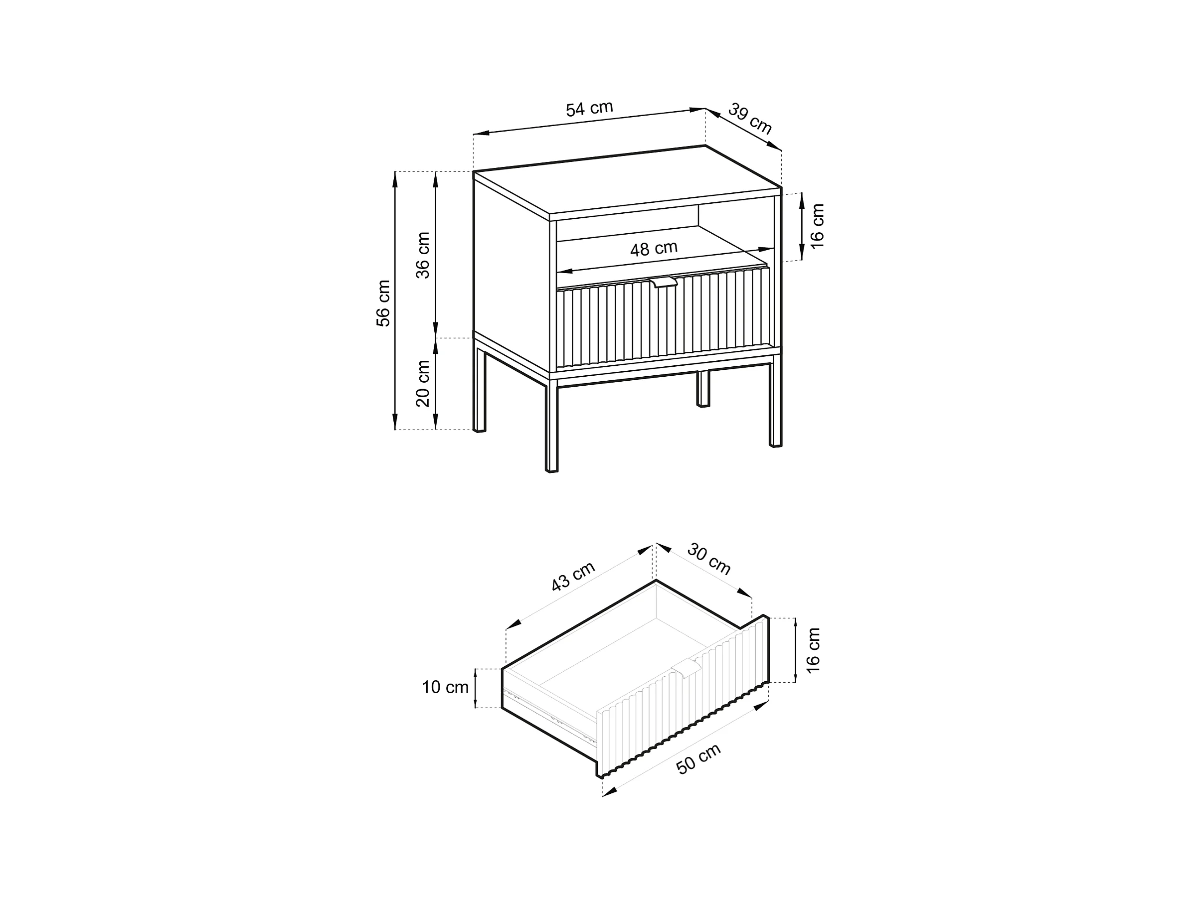 Chevet tafel 1 lade met metalen pieds zwart 54x56 cm