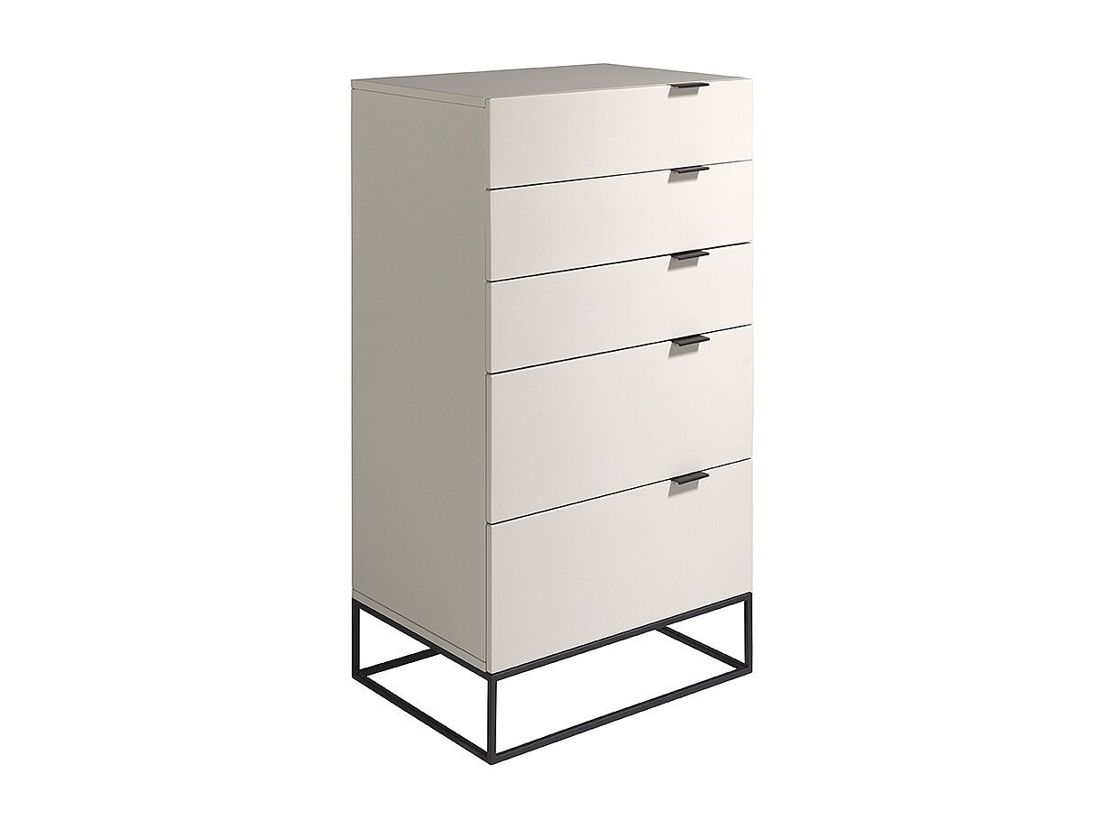 Chiffonier 5 laden gelakt hout en zwart staal Ciora-Kleur Parel