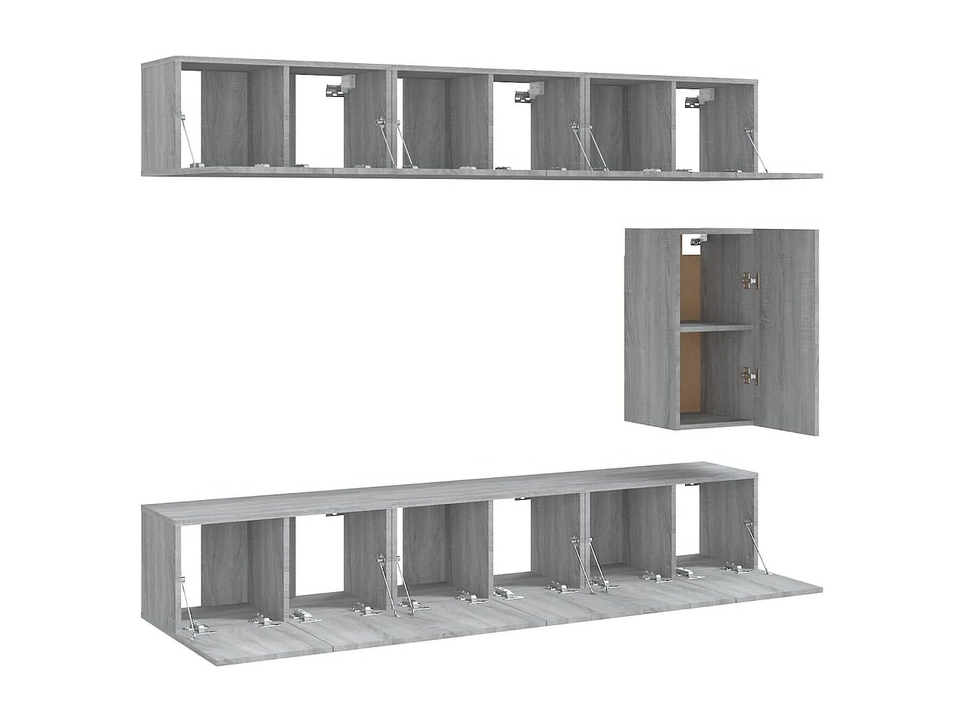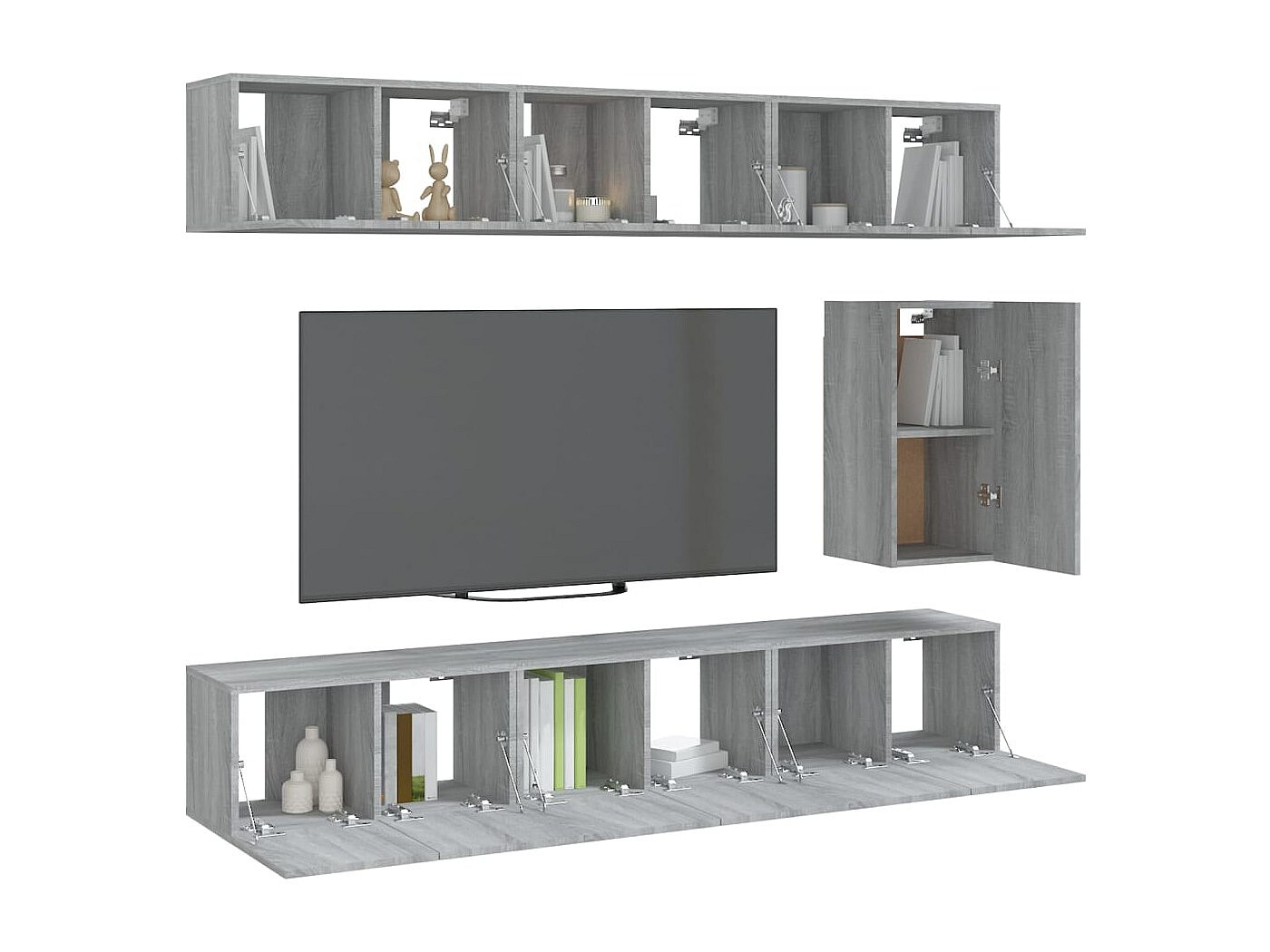Claudia Isabel 7-delige Tv-meubelset bewerkt hout grijs sonoma eikenkleurig
