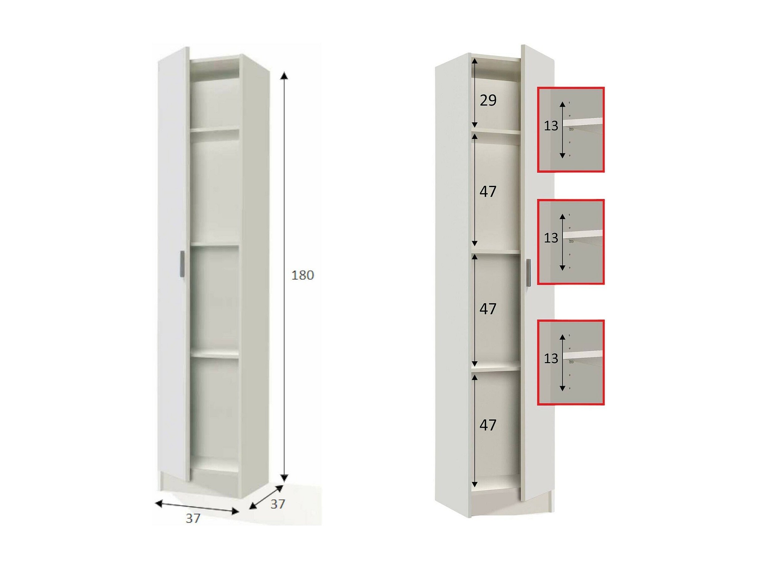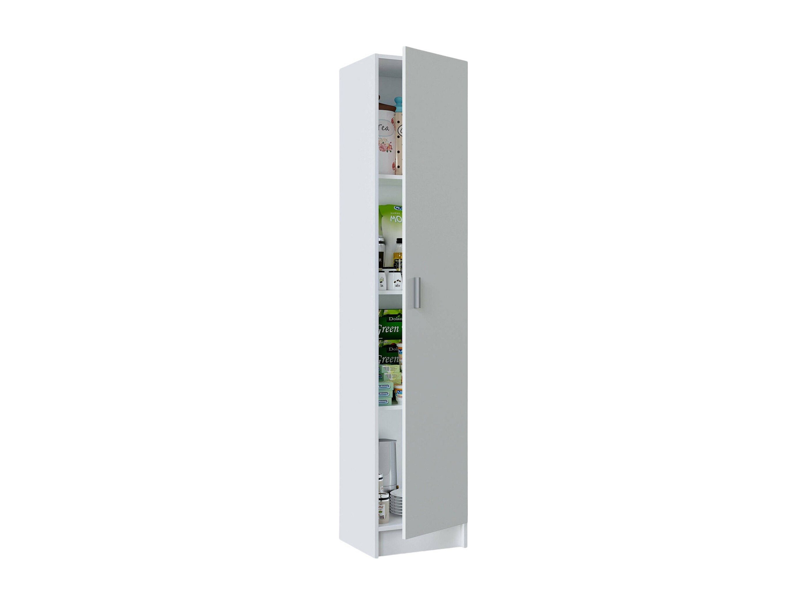 Irvine multifunctionele kledingkast, Extra kast met 2 deuren en 3 planken, Bezemkast, 80x37h182 cm, Cement en Wit