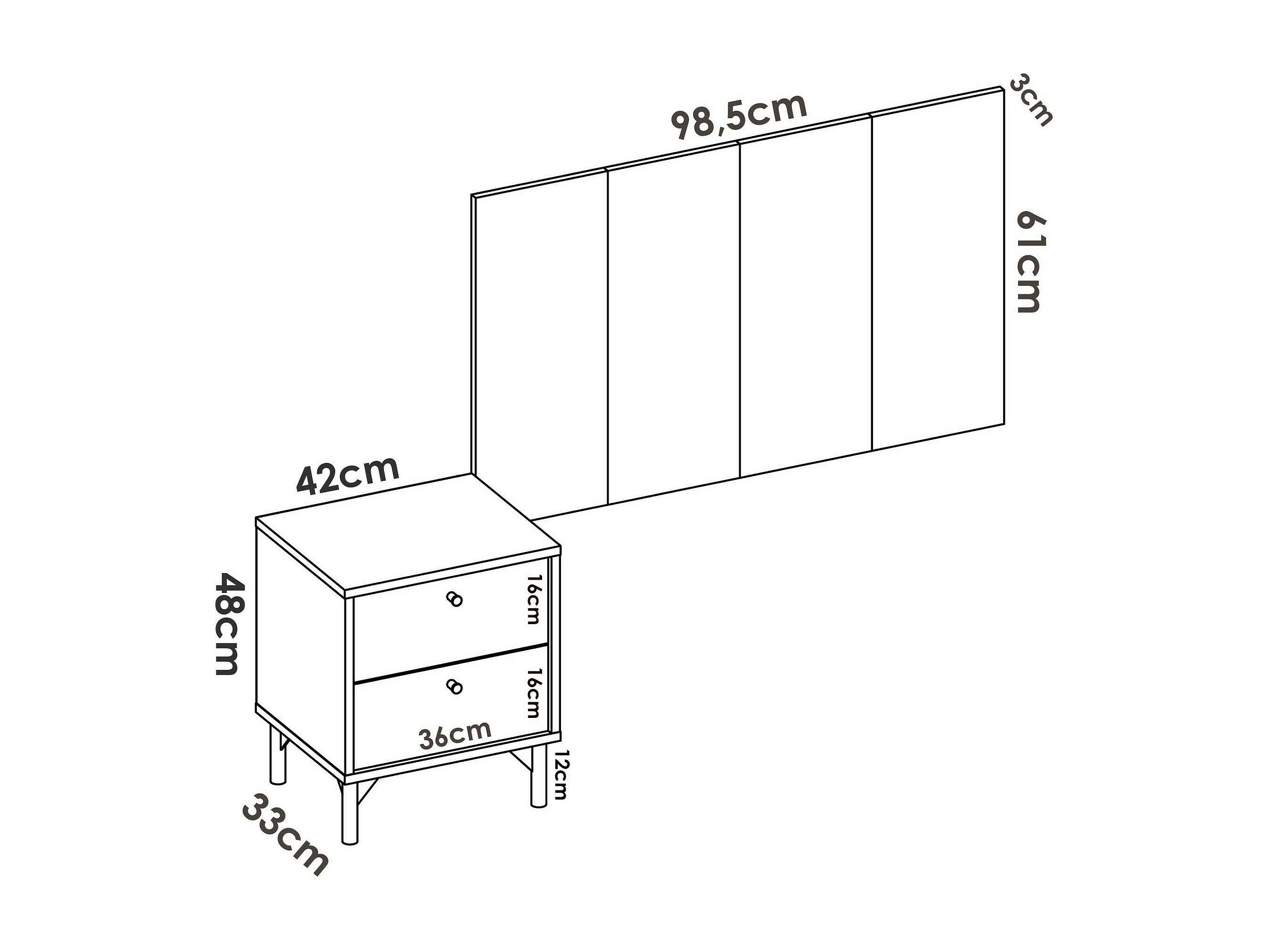 Colombine bedhoofdeinde, Bedhoofdeinde voor eenpersoonskamer, Hoofdeinde voor eenpersoonsbed met 1 nachtkastje, 99x3h61 cm, Eiken en Antraciet