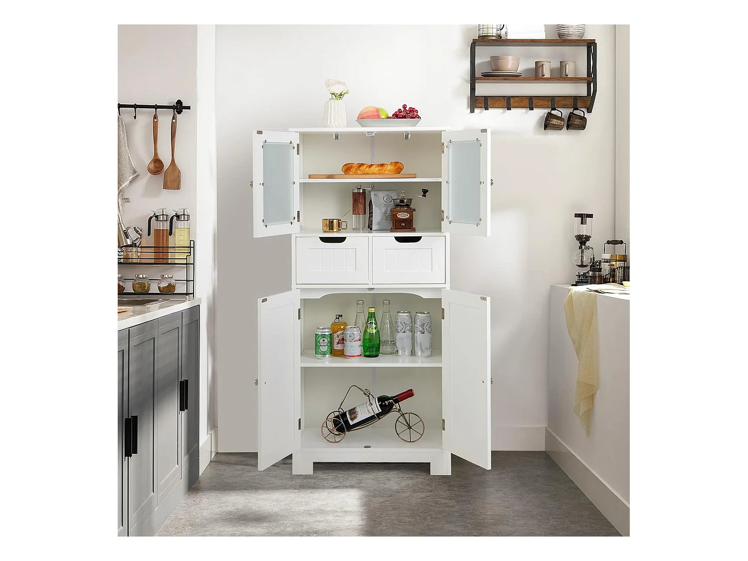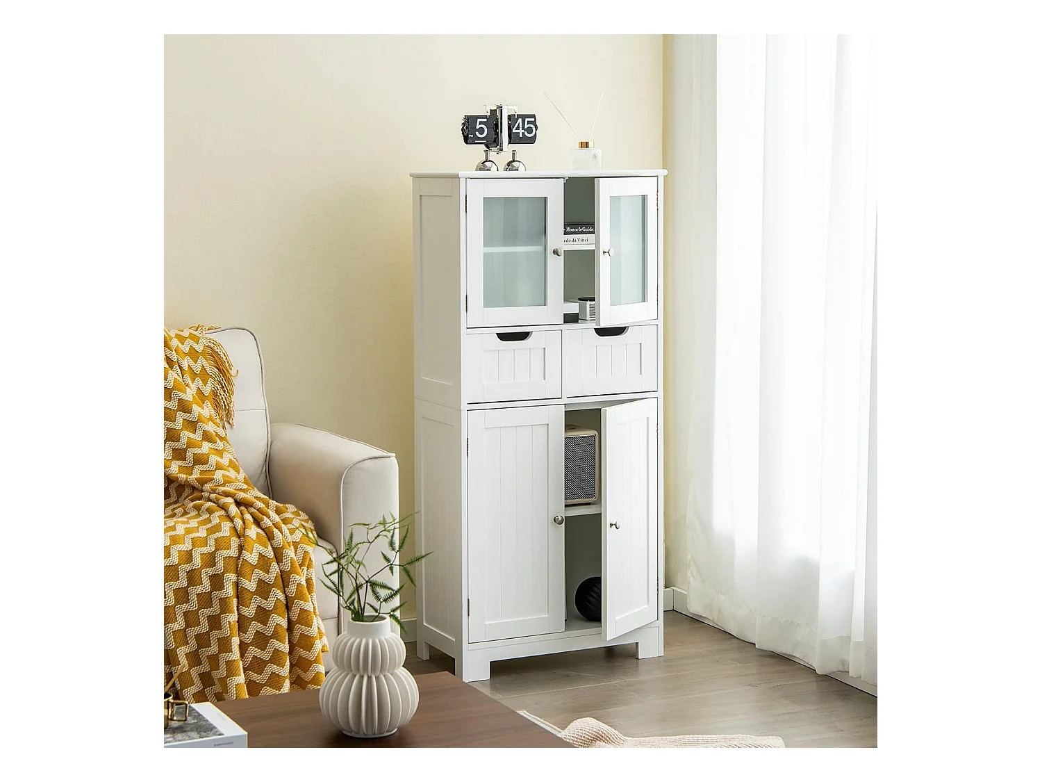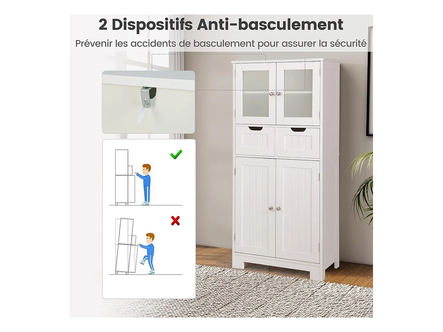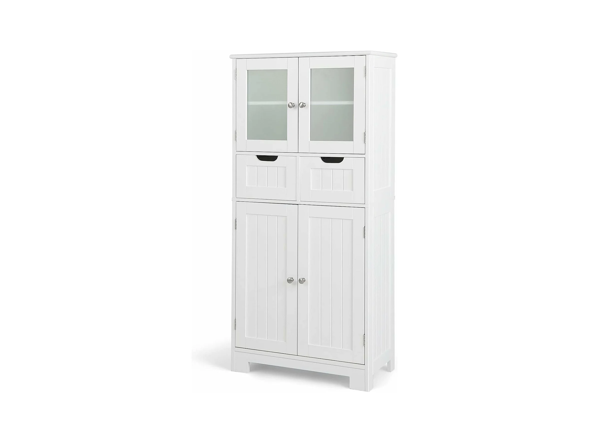 SoBuy BZR187-W Hoge kast met 2 deuren en 6 compartimenten opbergkast voor badkamer badkamerkast met open vakken smalle badkamerkast