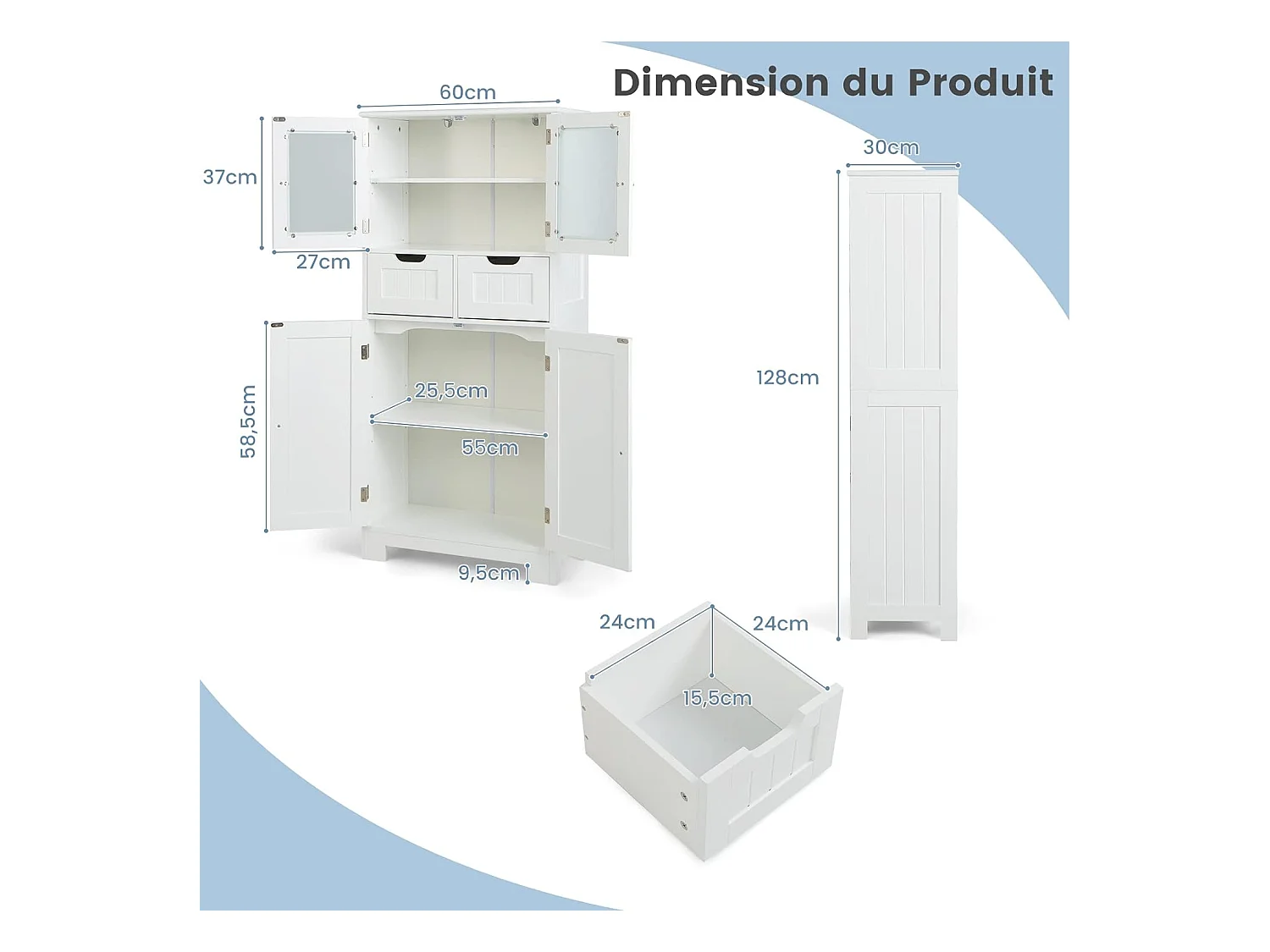 Badkamerkolom 60 x 30 x 128 cm hoge kast met verstelbare planken voor woonkamer, keuken, wit