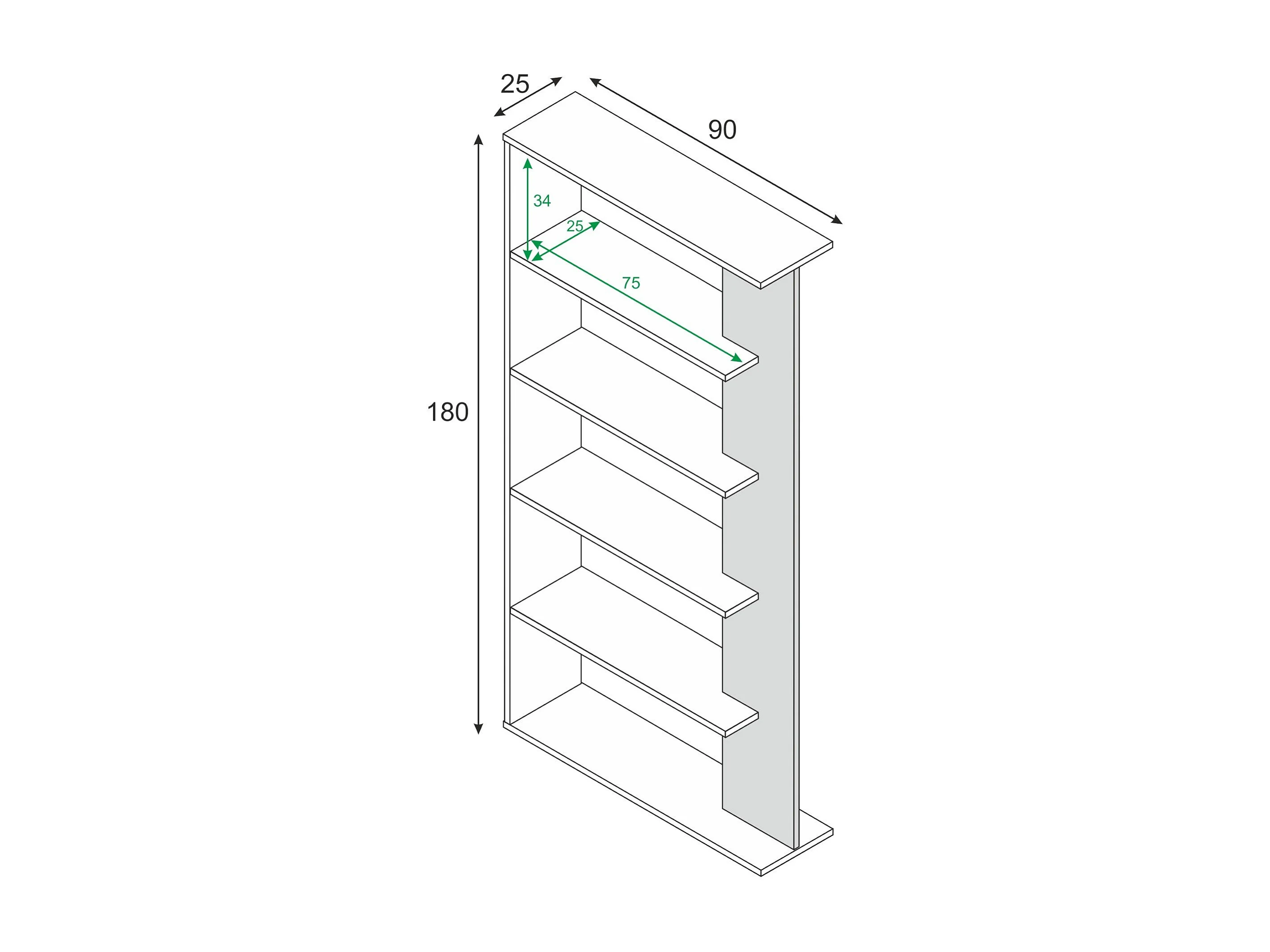 Fremont boekenkast, Boekenkast met meerdere posities met 8 vakken, Kantoorplank, Ruimteverdelerplank, 80x25h180 cm, Wit en Oxide
