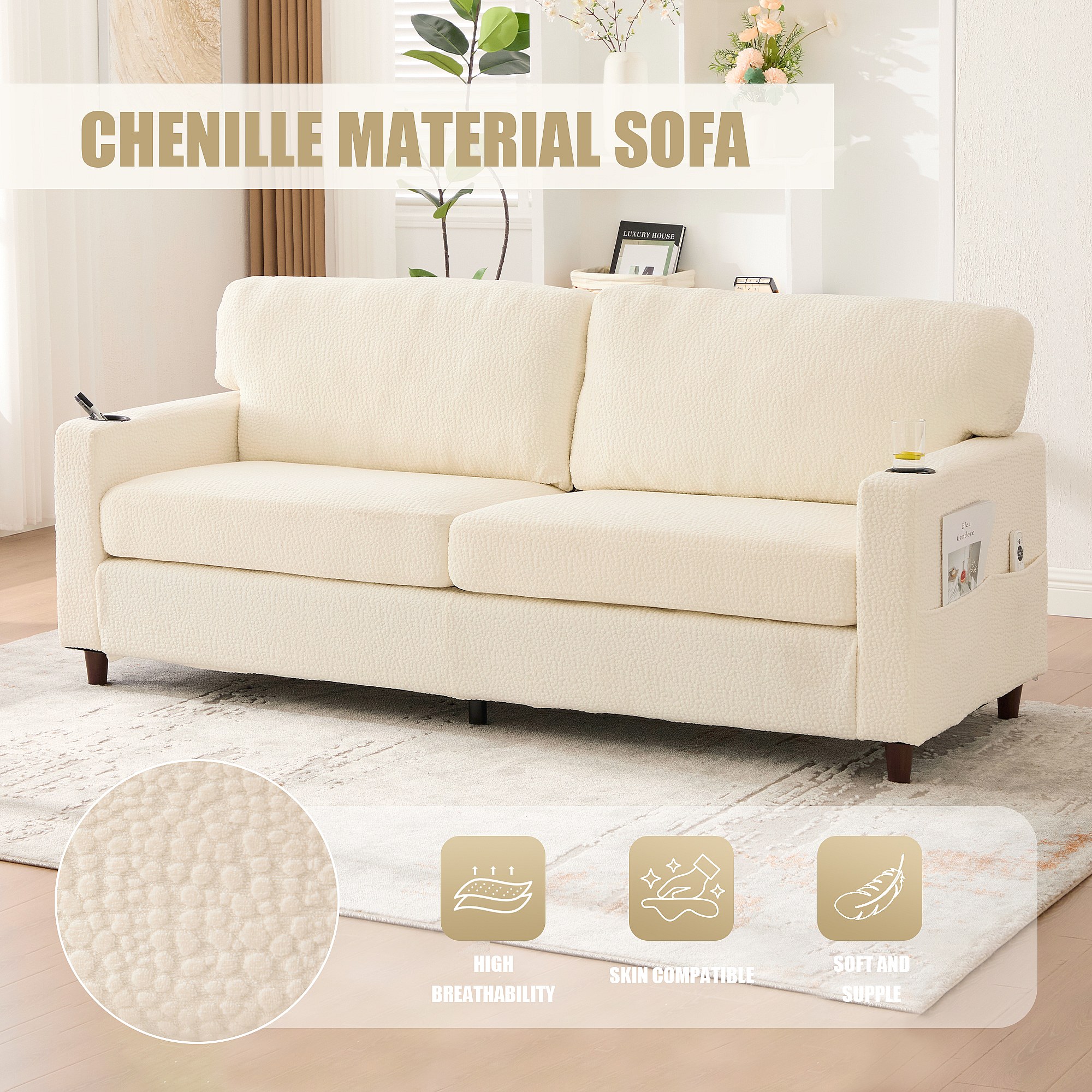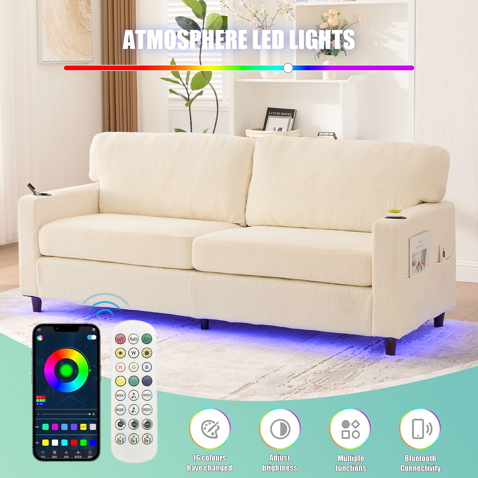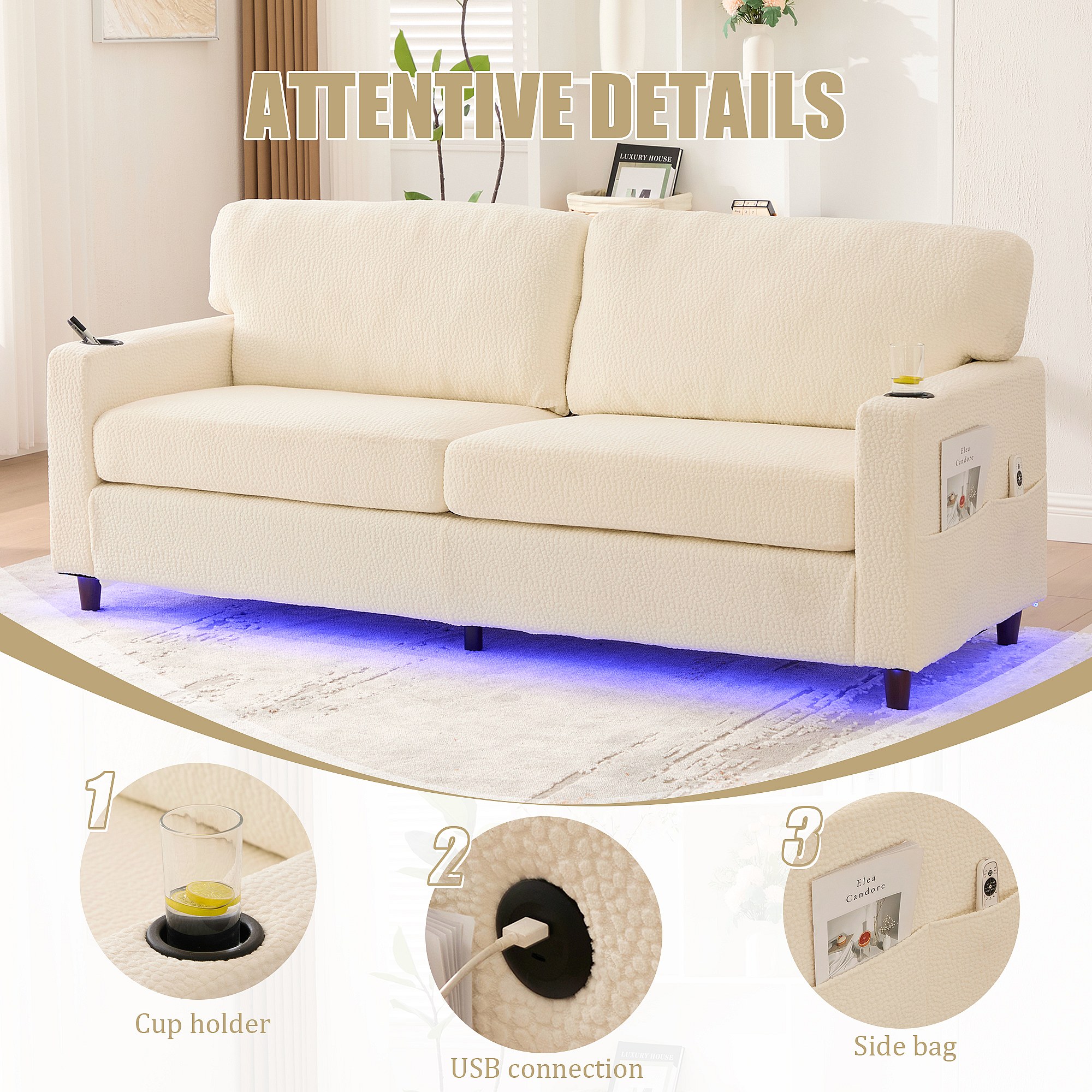 Comfortabele 2-zitsbank - Chenille Fluwelen Bank met USB/Type-C Poorten en RGB LED - Afstandsbediening - Voor Woonkamer, Lounge, Kantoor