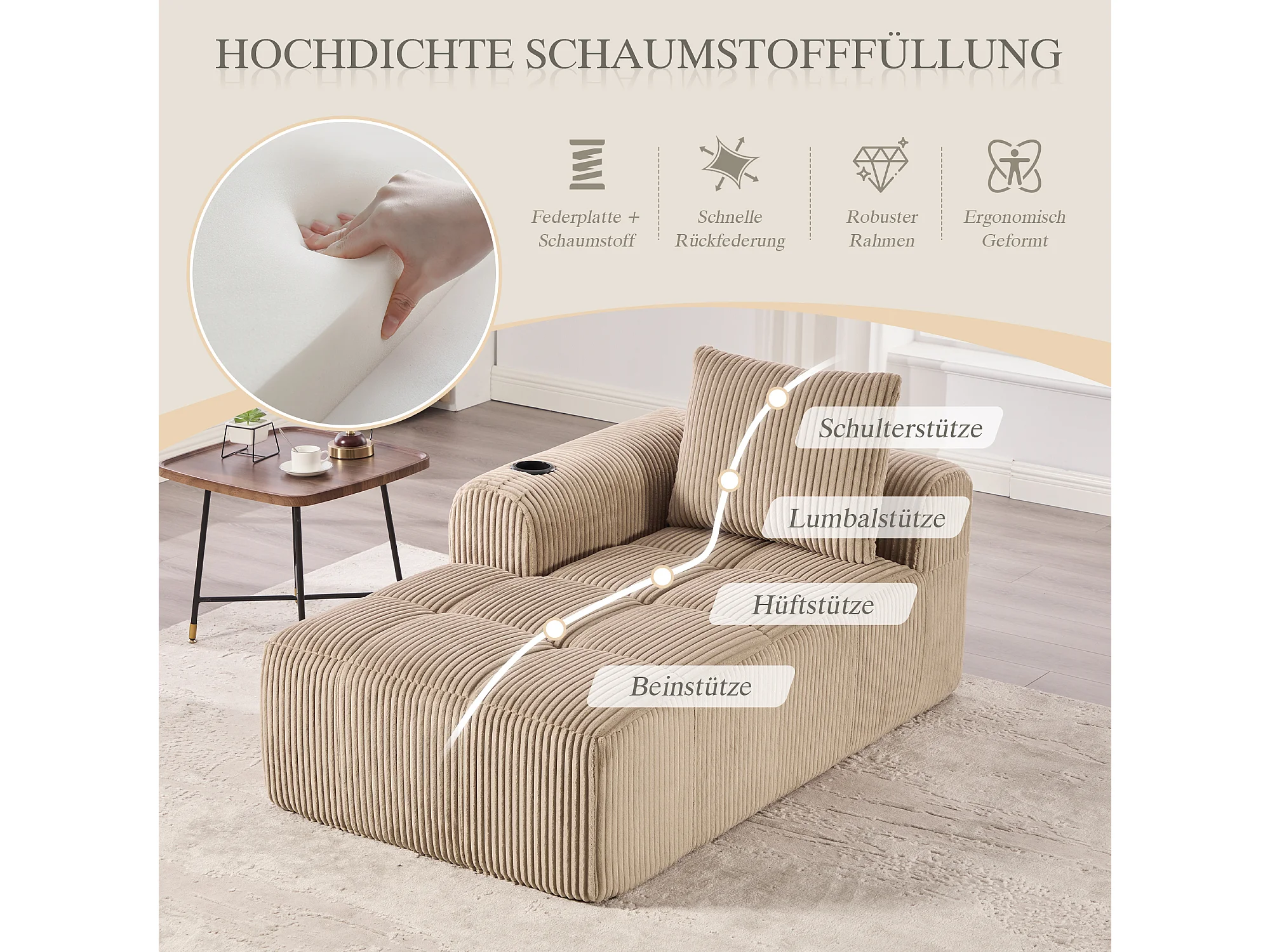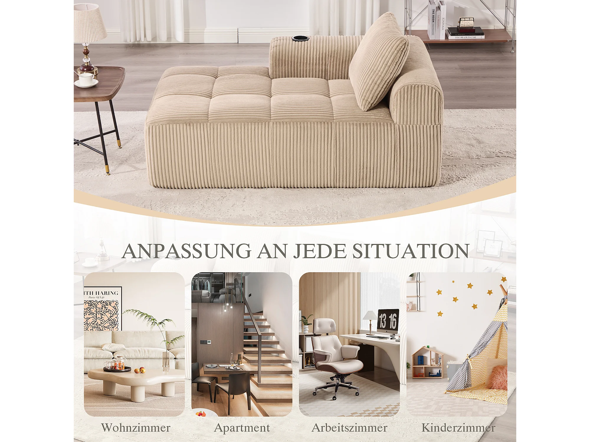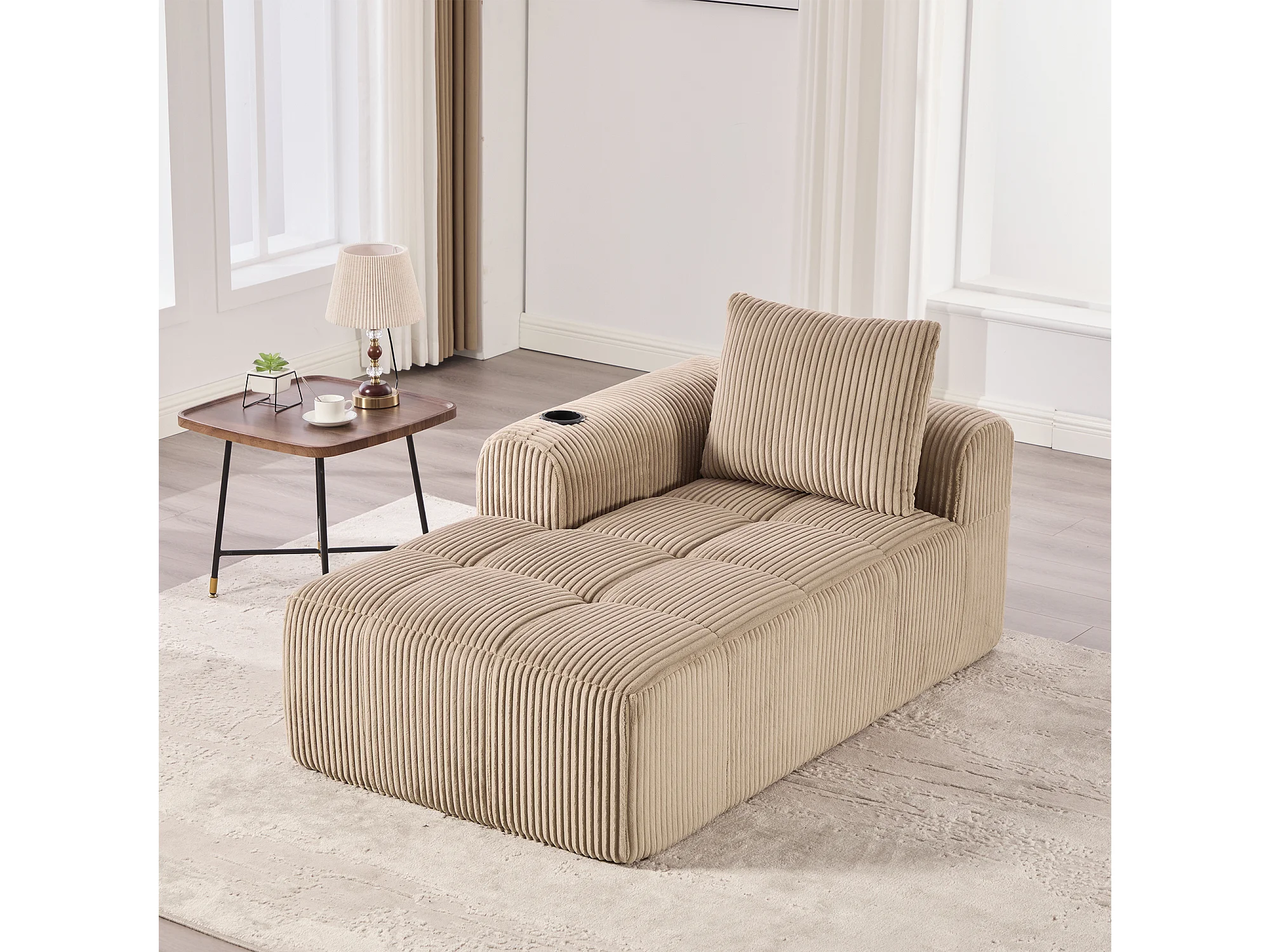 Comfortabele relaxbank - 158 x 93 x 61 cm - geen montage nodig - met rugkussens + opbergvak - fluweel - kaki