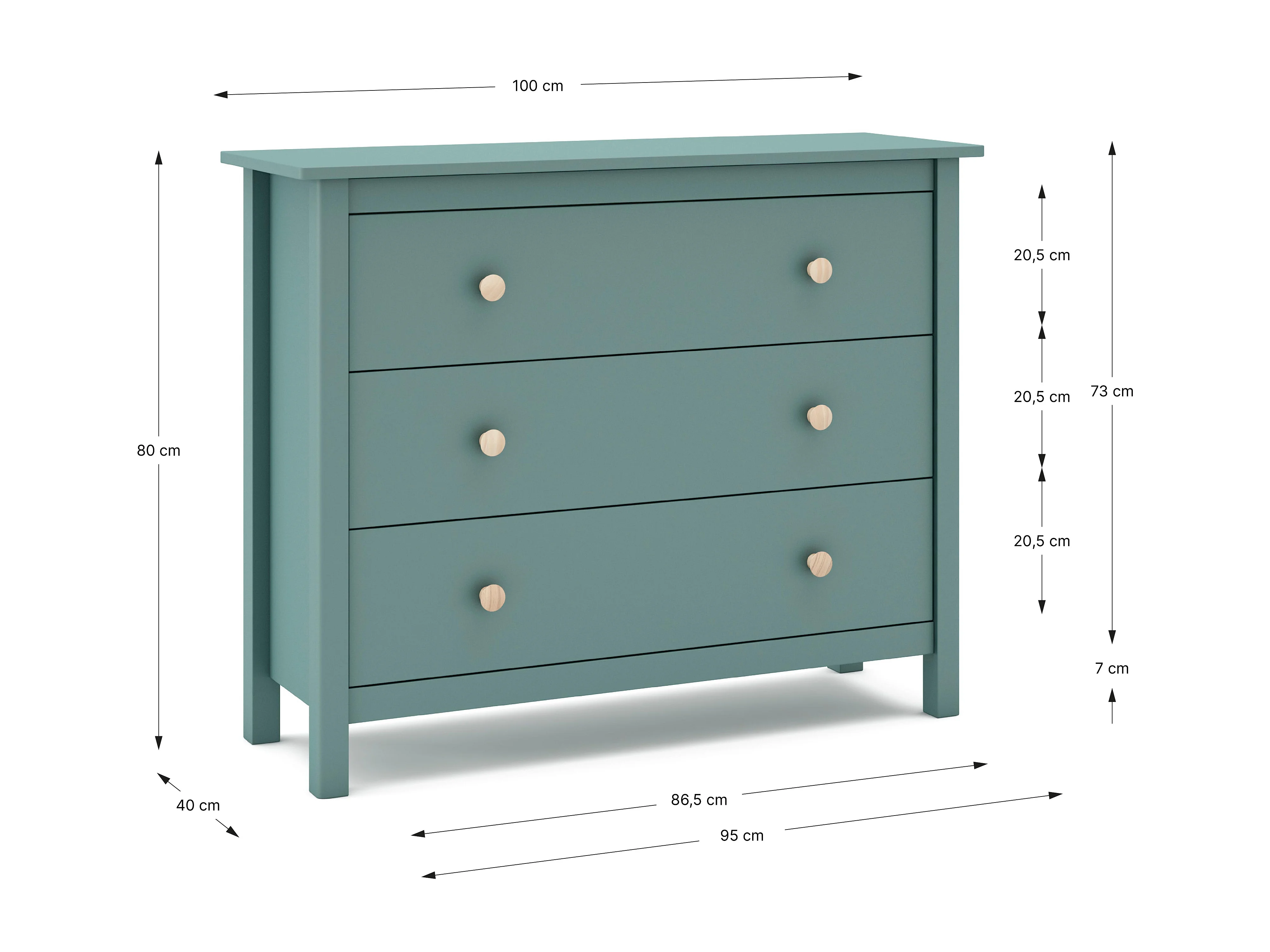 Commode met 3 lades 100x80 cm