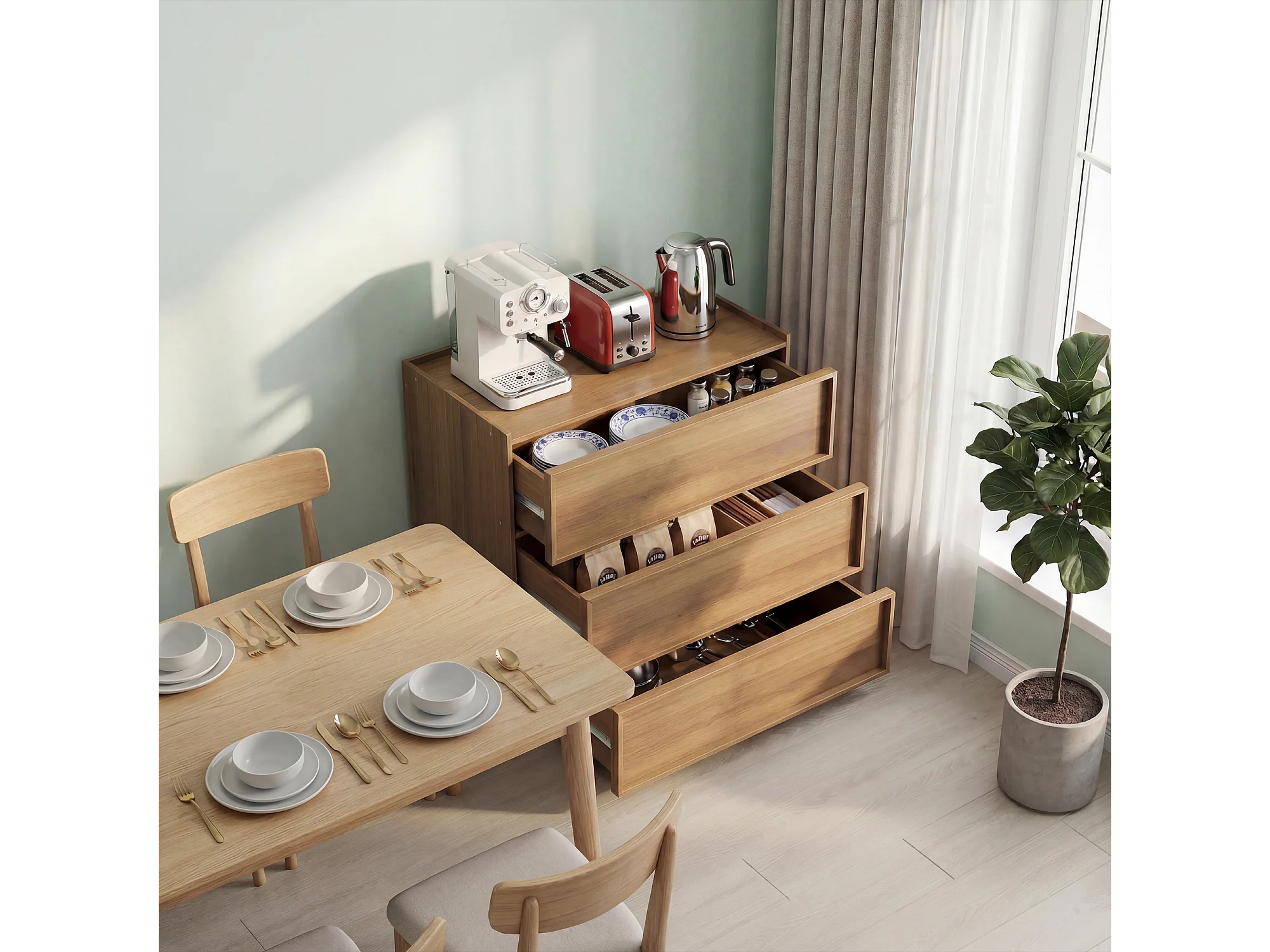 Commode met 3 lades voor de woonkamer, slaapkamer of hal - Eikenkleur 80x48x78 cm