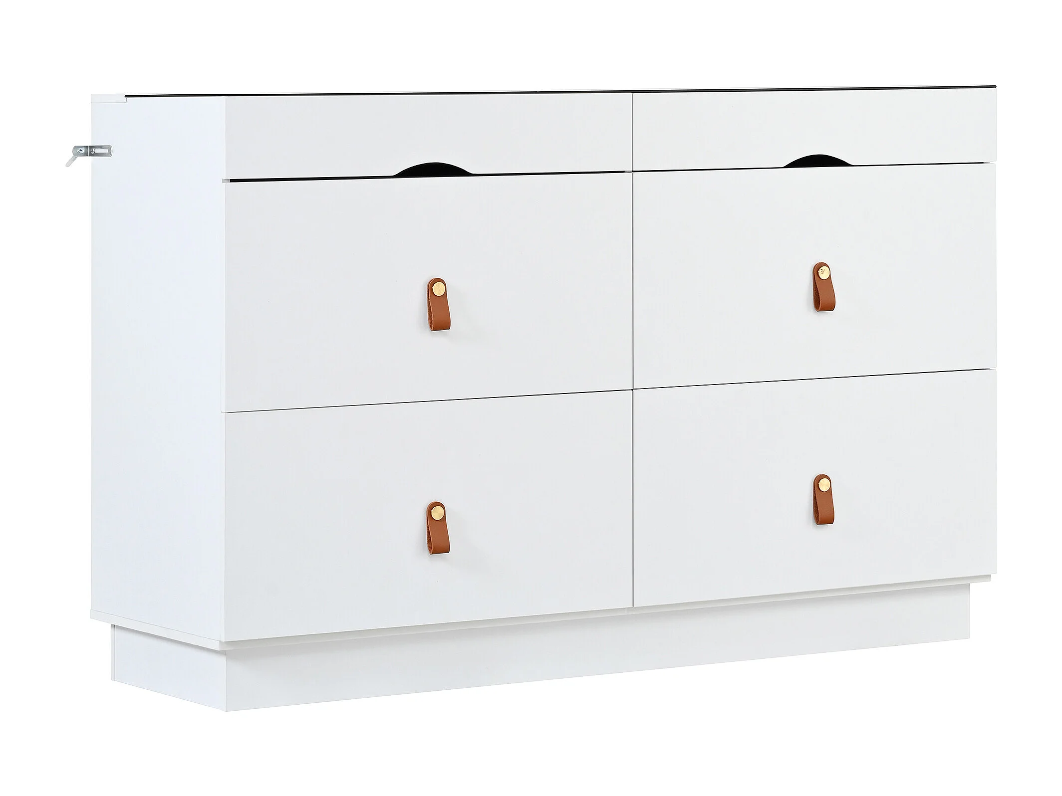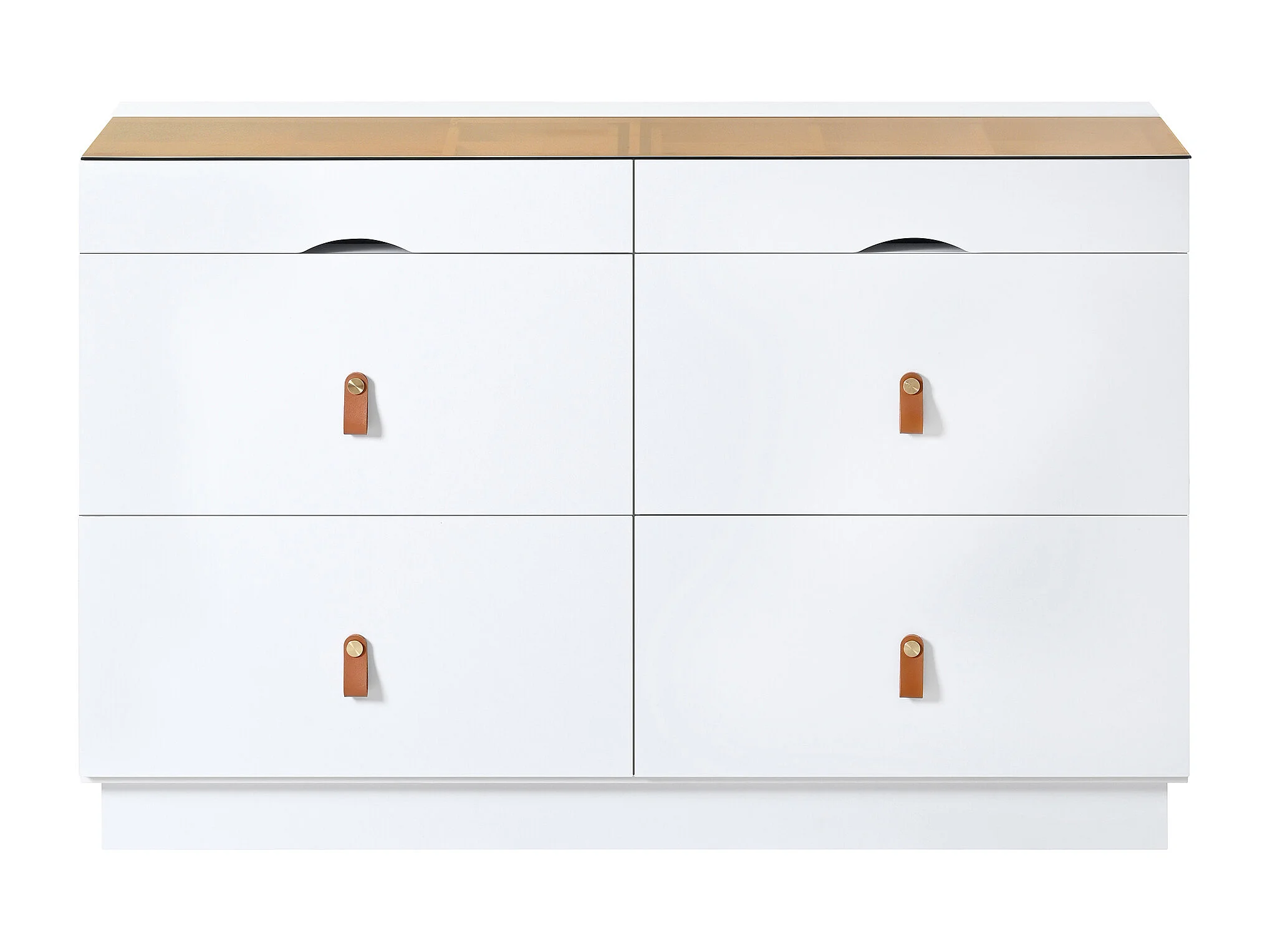 Commode met 6 laden 120 x 40 x 78 cm - Hout en wit glas