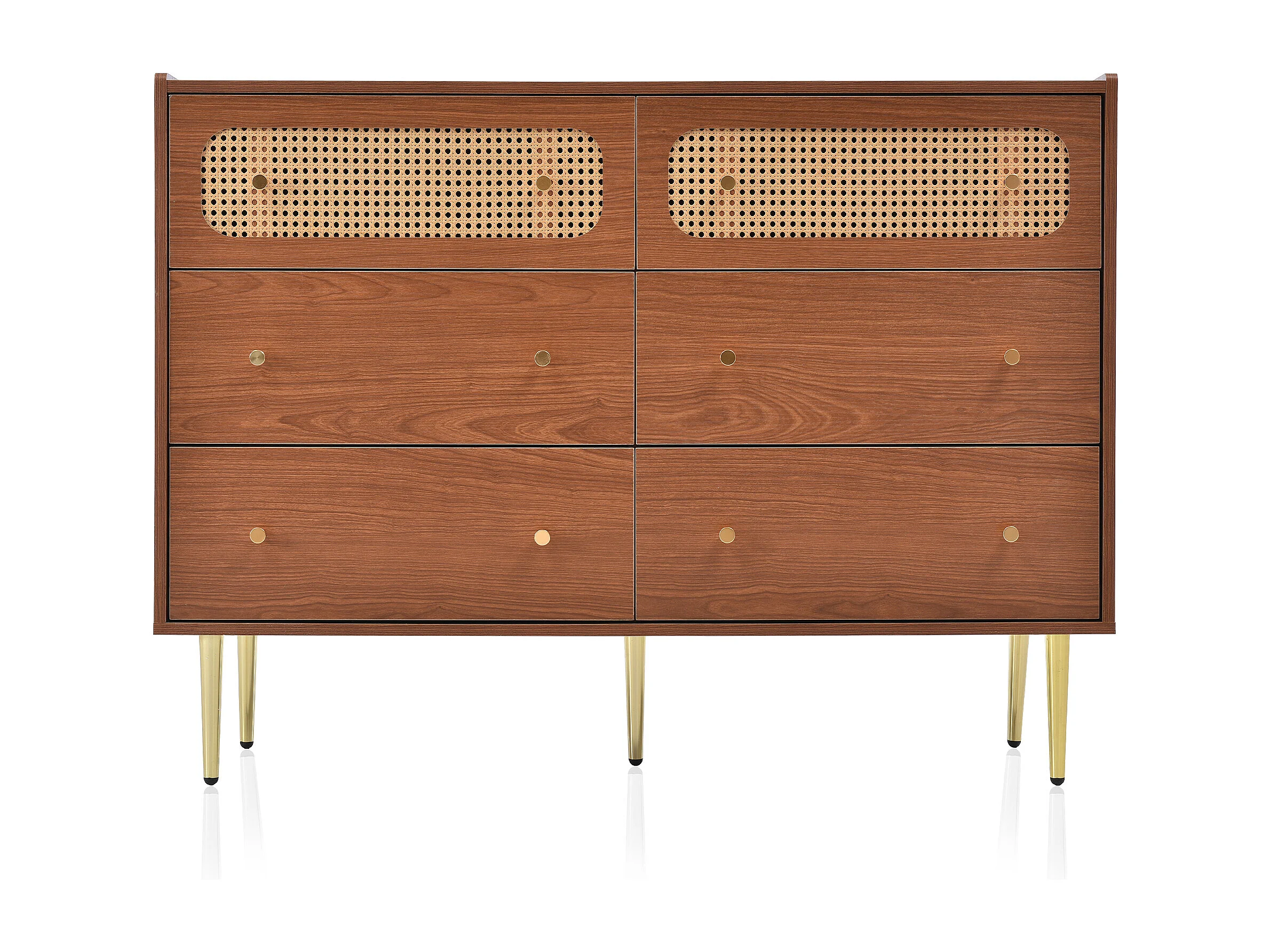 Commode met 6 laden - Gouden metalen poten - Walnootkleur