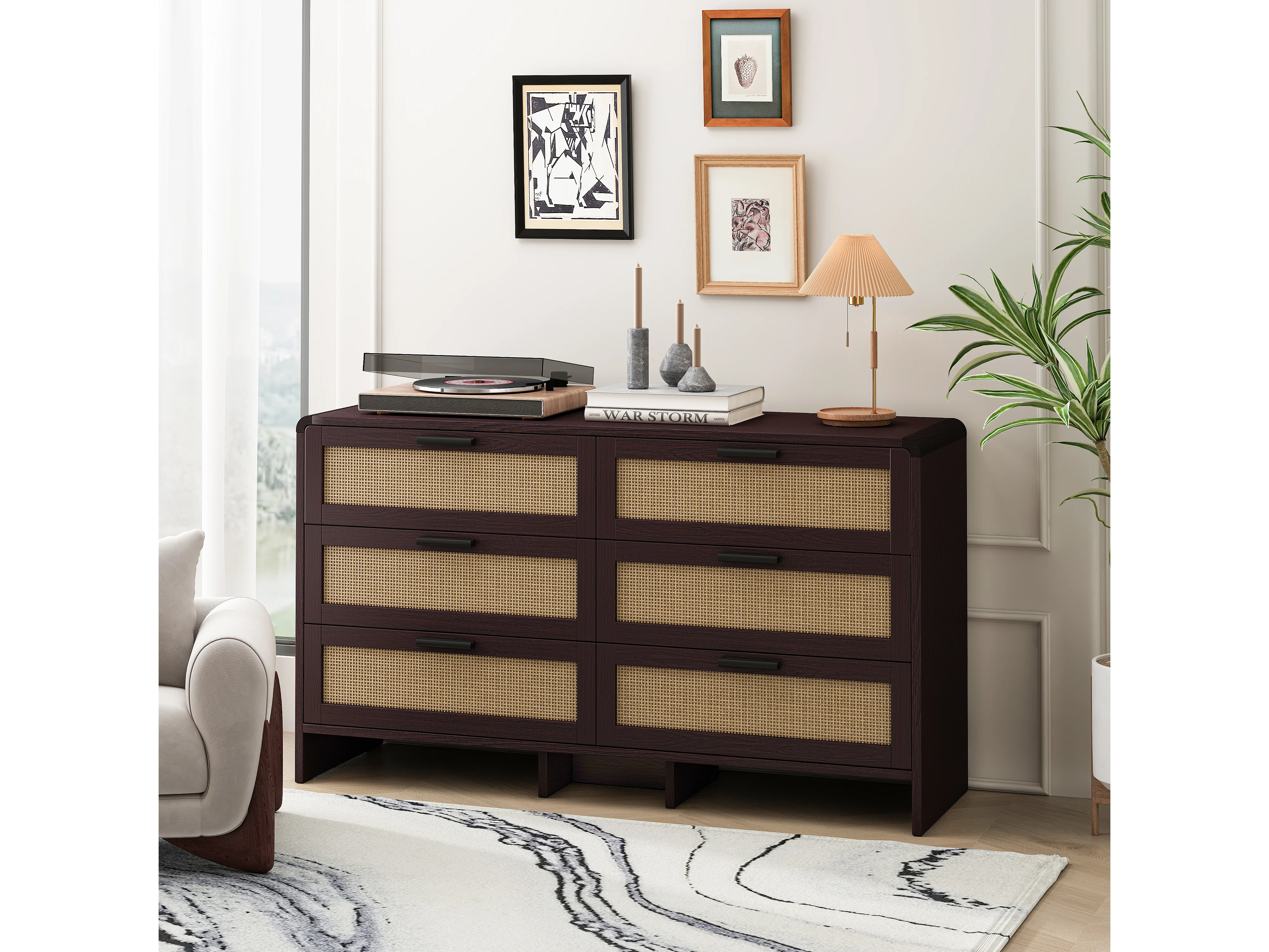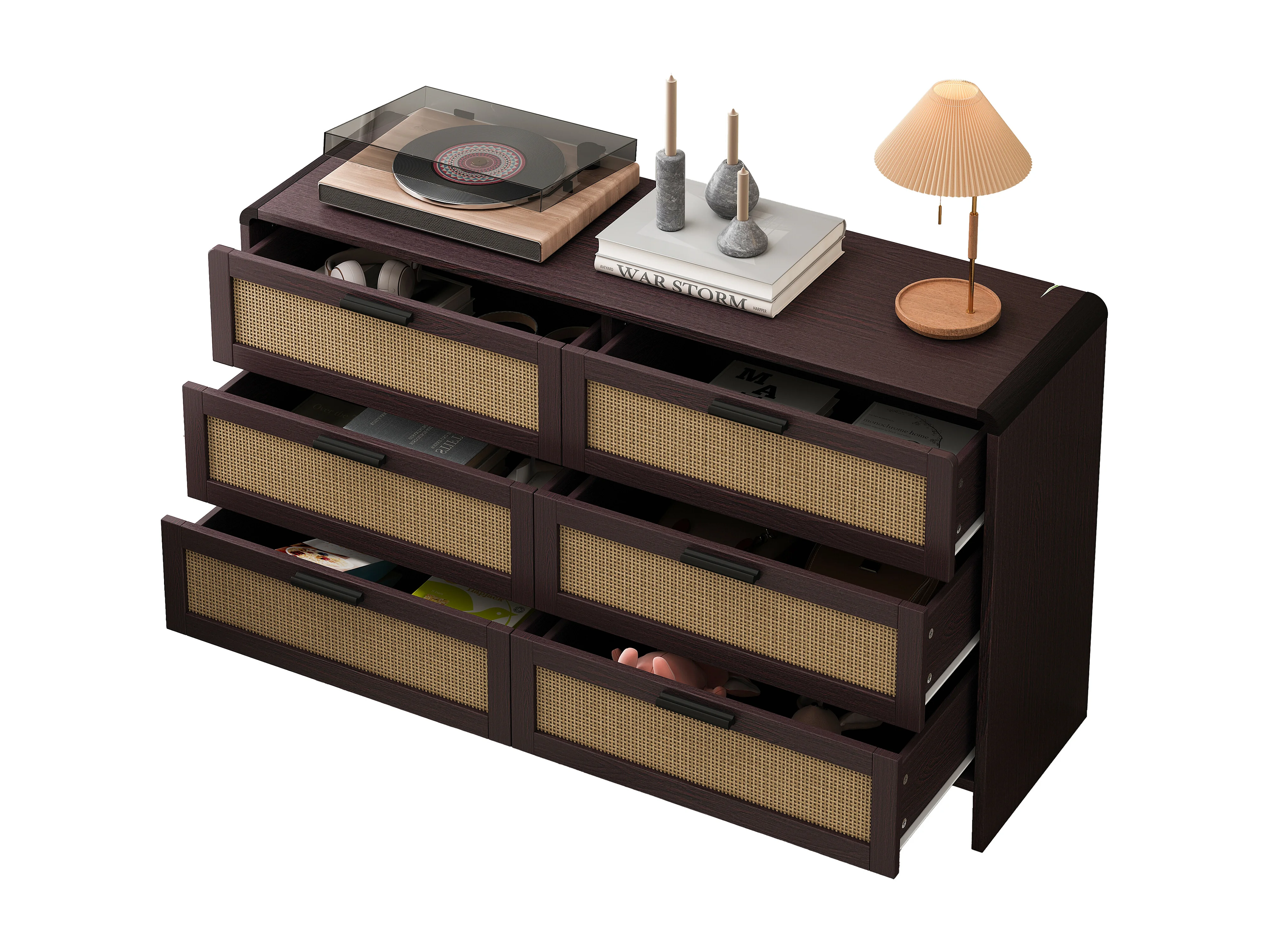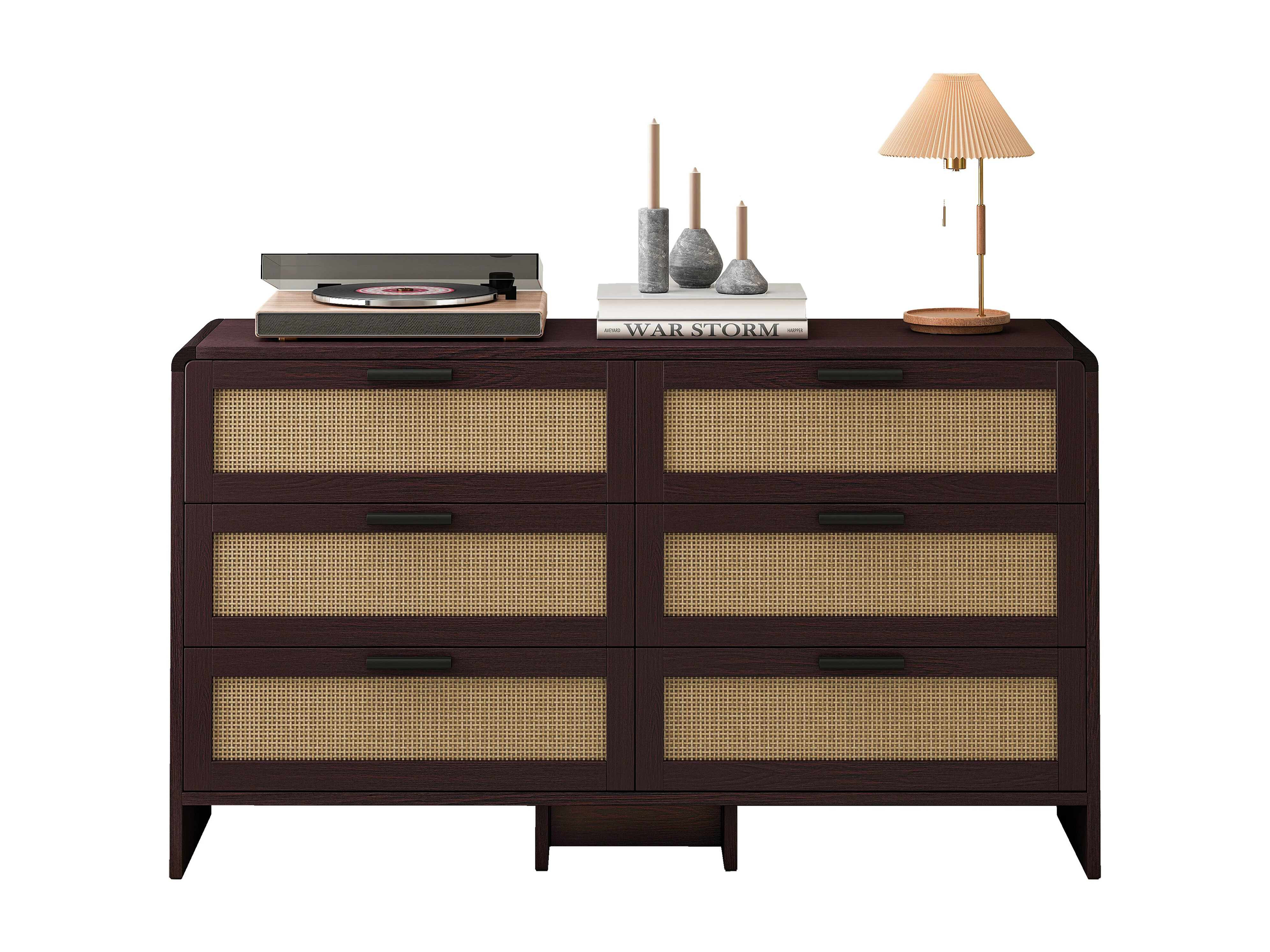 Commode met 6 lades in roodbruin rotan - Voor slaap- en woonkamer