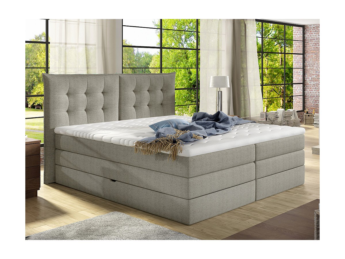 Complete boxspring met hoofdeinde, bedbodem met opbergruimte, matras en dekmatras PLAISIR van Palacio - Beige stof - 2 x 80 x 200 cm