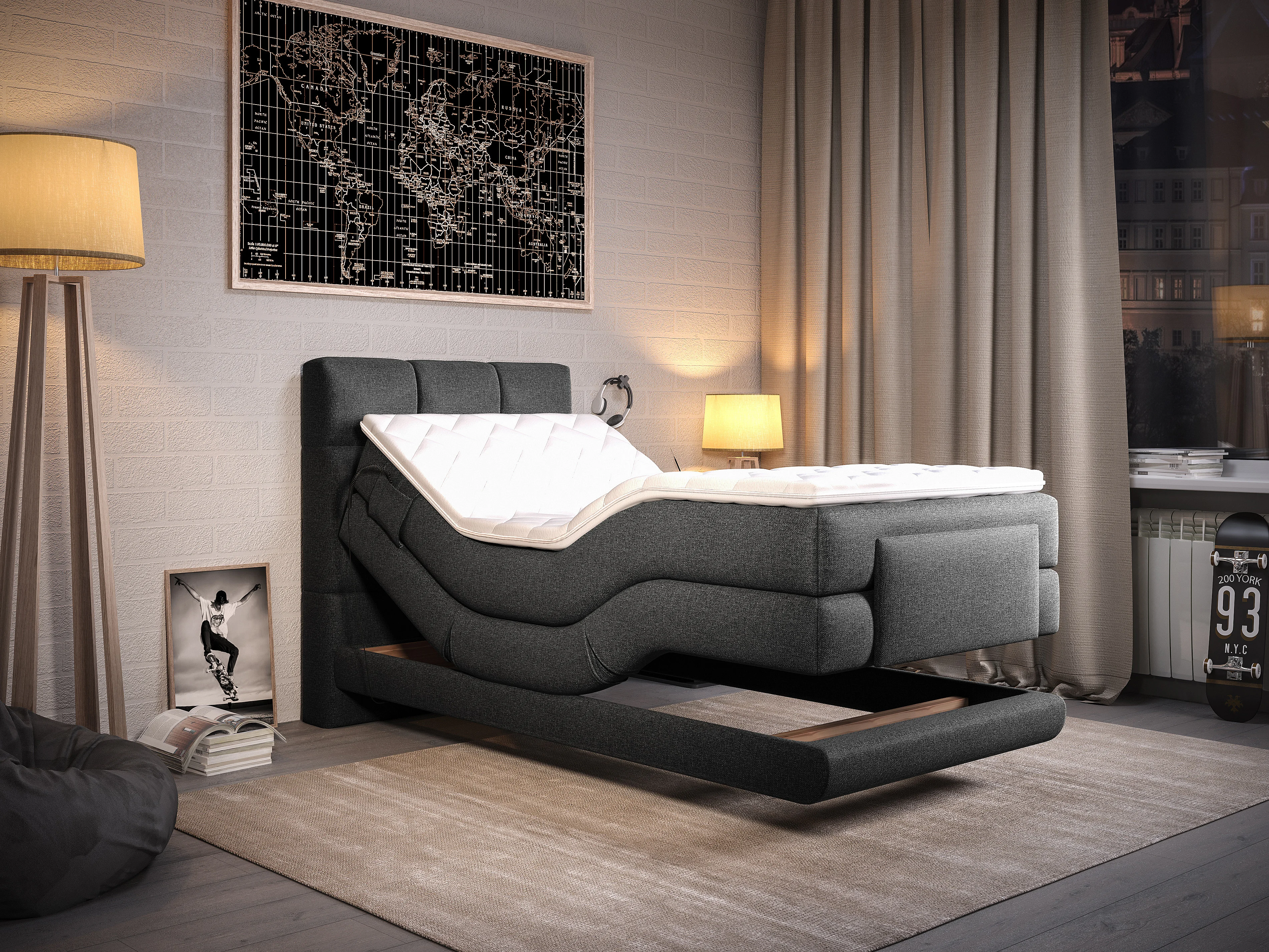 Complete boxspringset met gestoffeerd hoofdbord – Elektrische relaxbedbodems – Met matras – Met topmatras - 100 x 200 cm – Antraciet – LODI van PALACIO