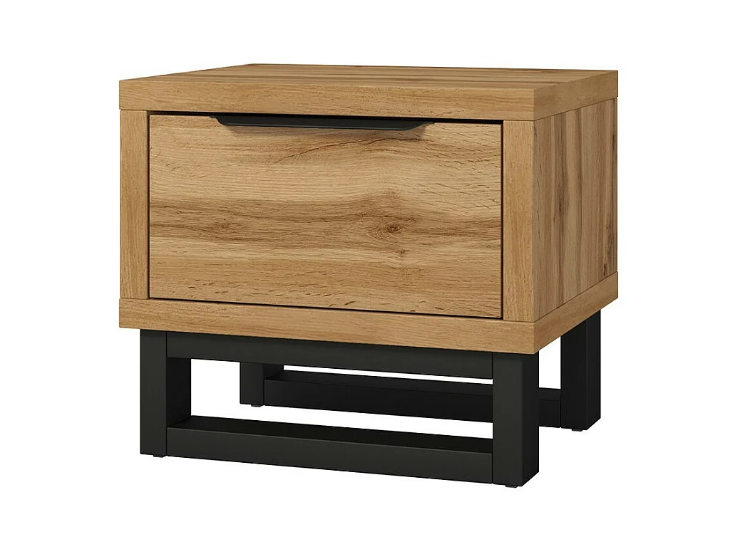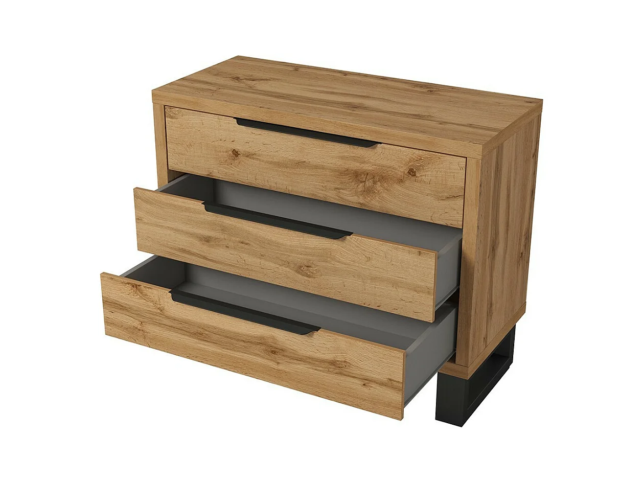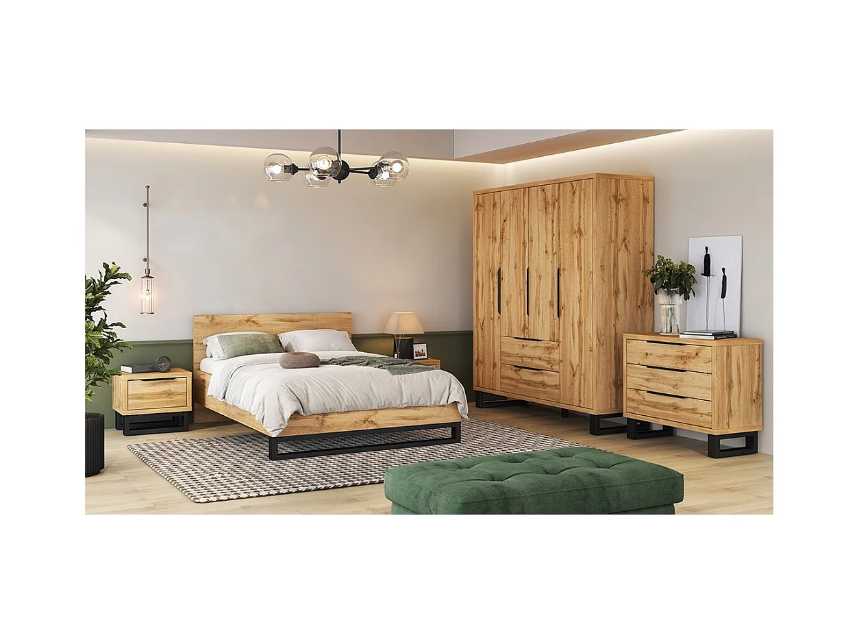 Industriële complete slaapkamer MILOS: Kledingkast met 4 deuren, bed 140x200, dressoir, nachtkastjes, ruw eiken/zwart
