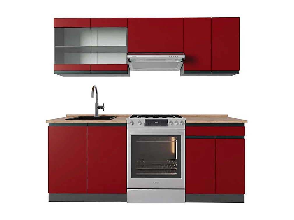 Complete keukeneenheid rood/antraciet 200x60x81.6 r-line