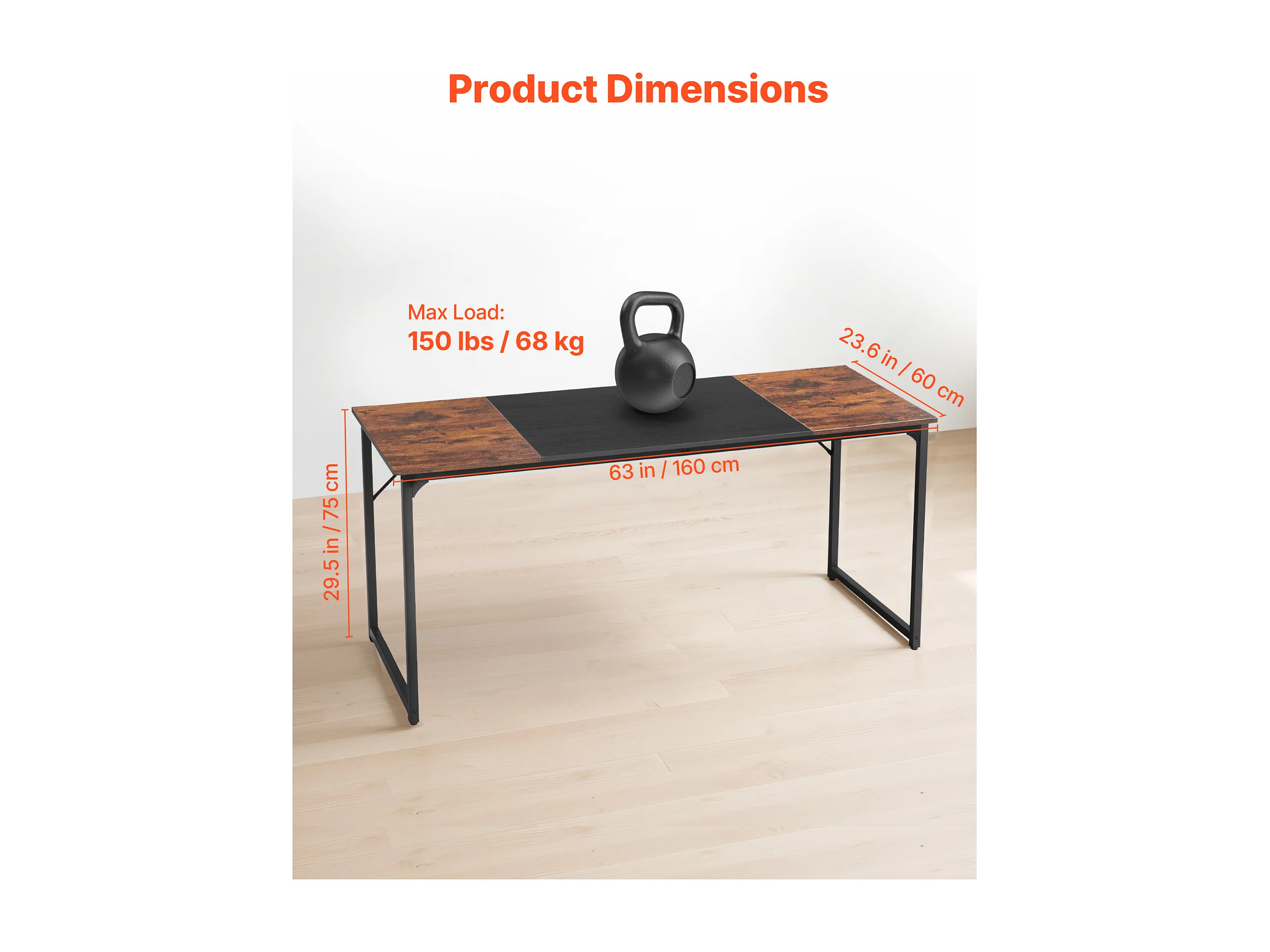 Computerbureau SucceBuy 160 x 60 x 75 cm, Bureau voor Computer van Hout met Metalen Frame, Eenvoudige en Moderne Studietafel, Rustiek Bruin