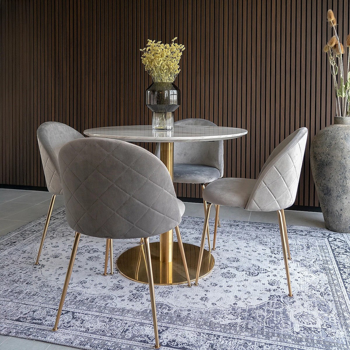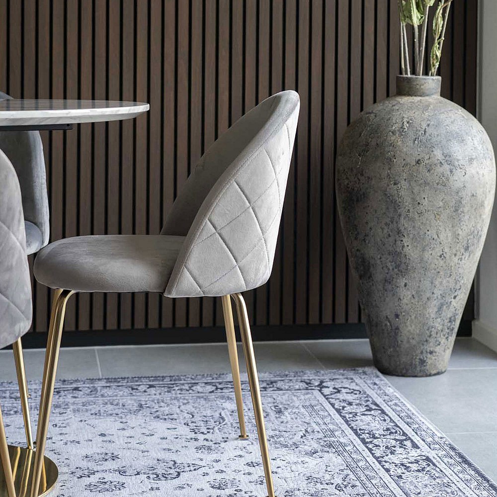 Geles eetkamerstoel grijs velours, poten in messing look.