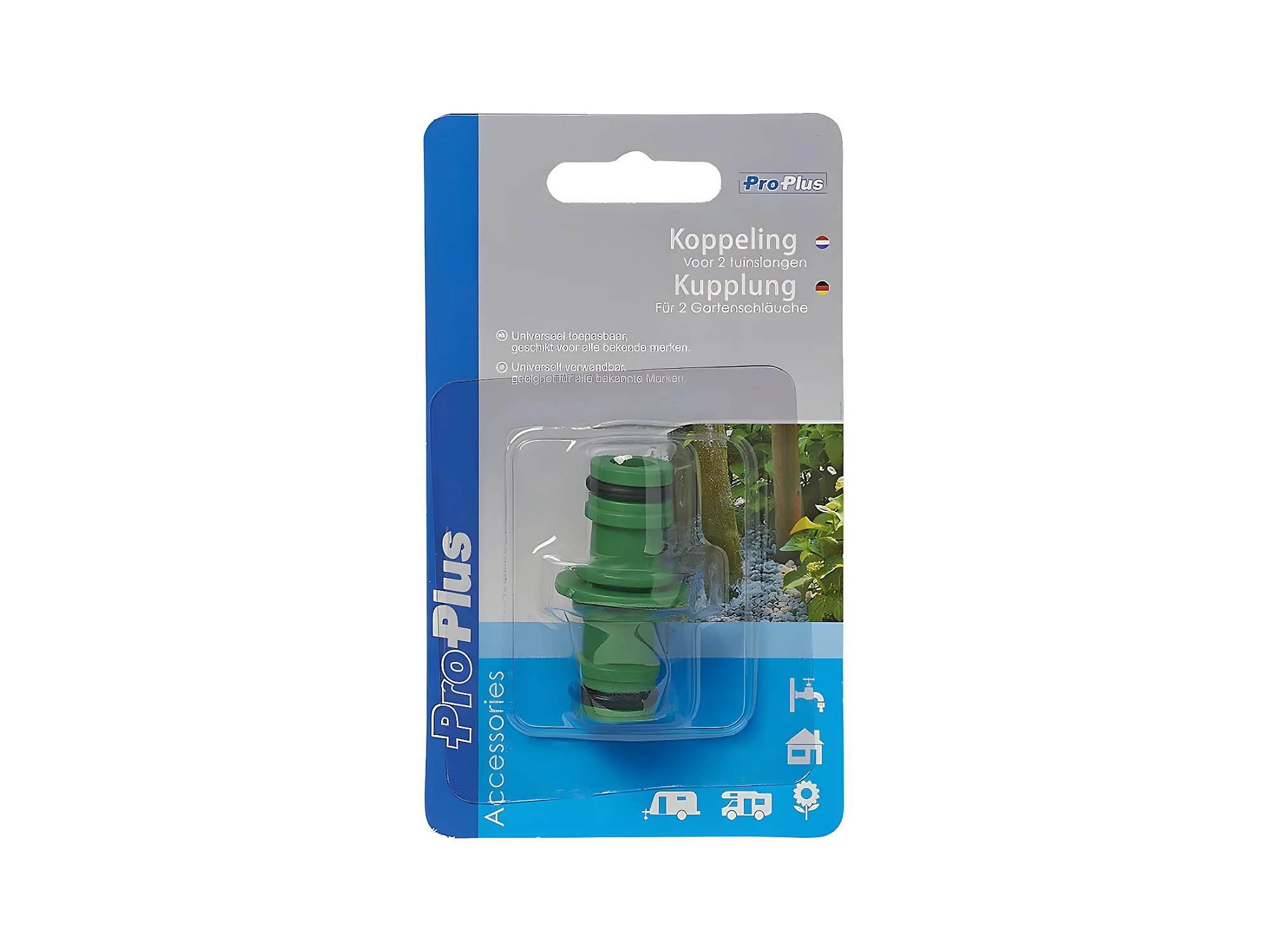 Connector voor 2 tuinslangen van alle grote merken - Multicolor