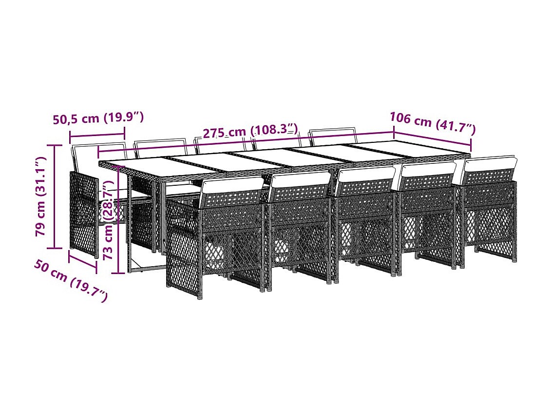 Brienne 11-delige Tuinset met kussens poly rattan zwart
