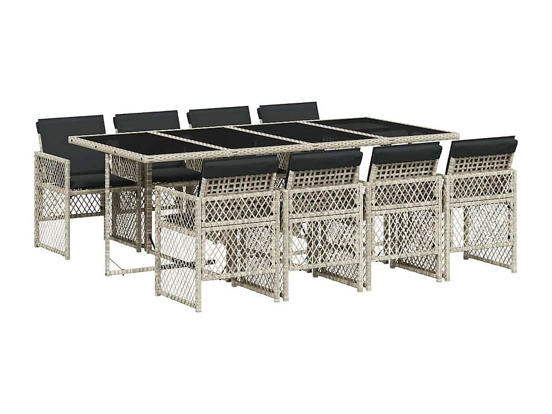 Zenn 13-delige Tuinset met kussens poly rattan lichtgrijs
