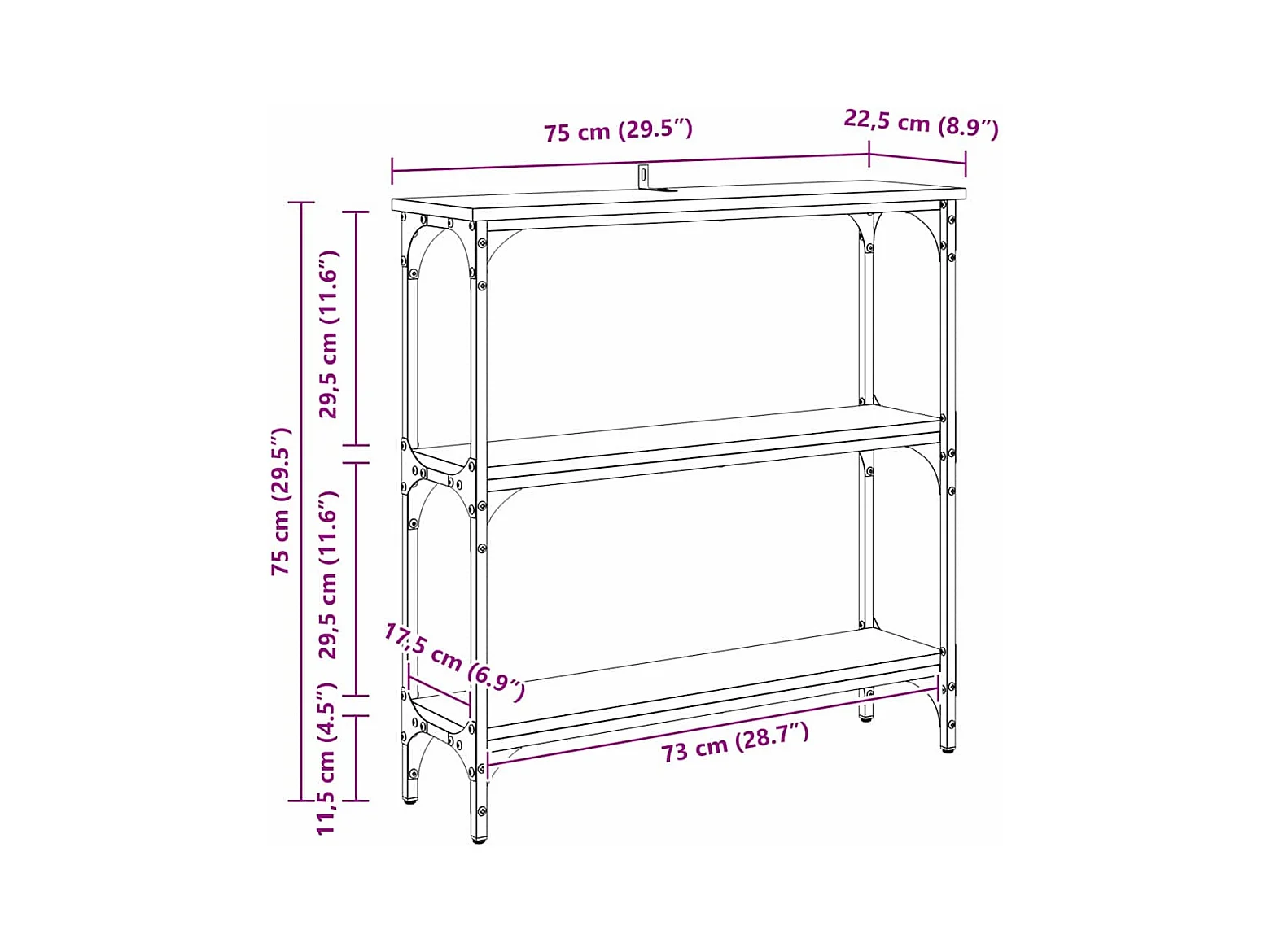 Consoletafel met plank Zwart eiken 75 x 22,5 x 75 cm