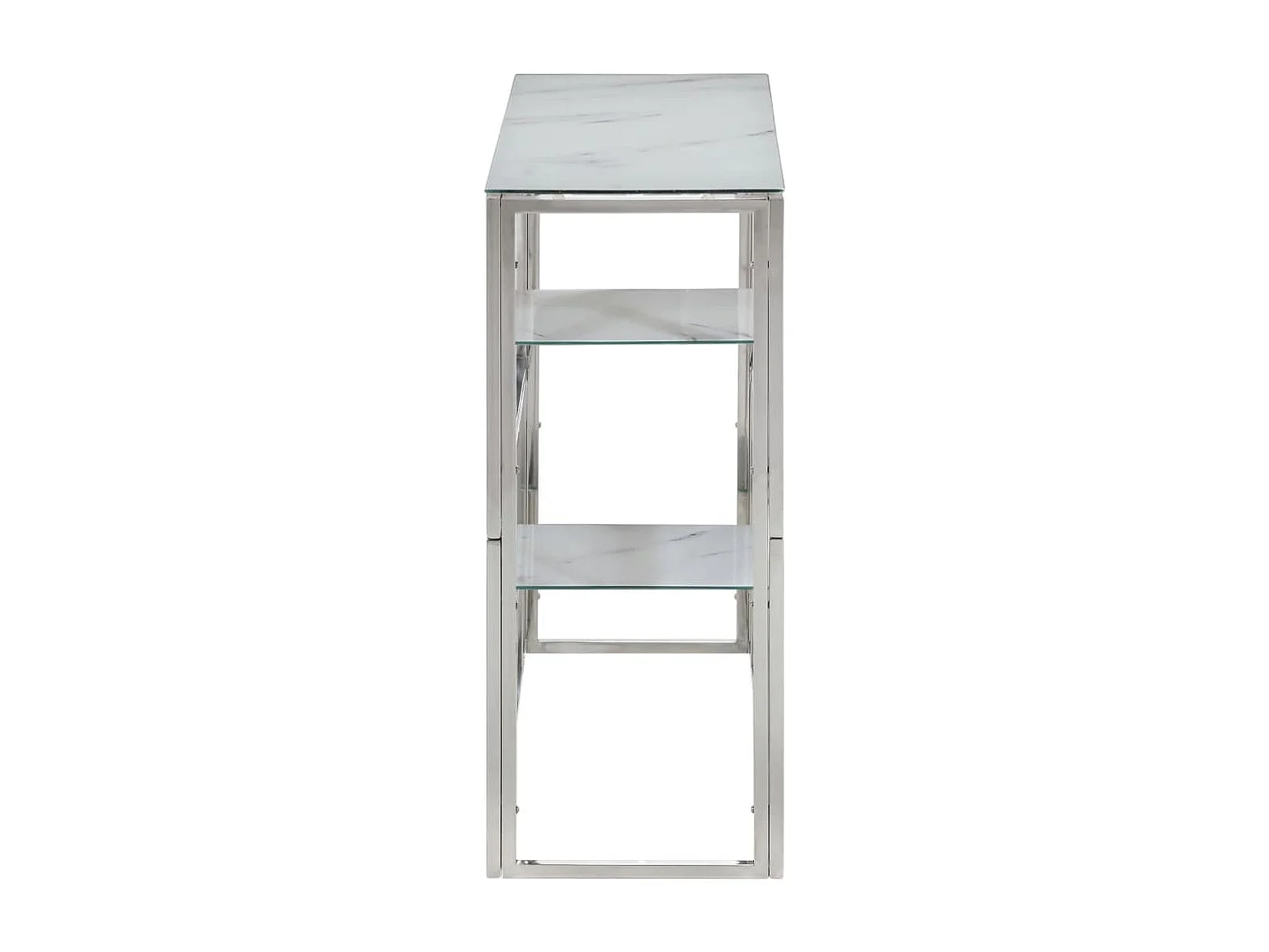 Consoletafel van zilverkleurig roestvrij staal en gehard glas