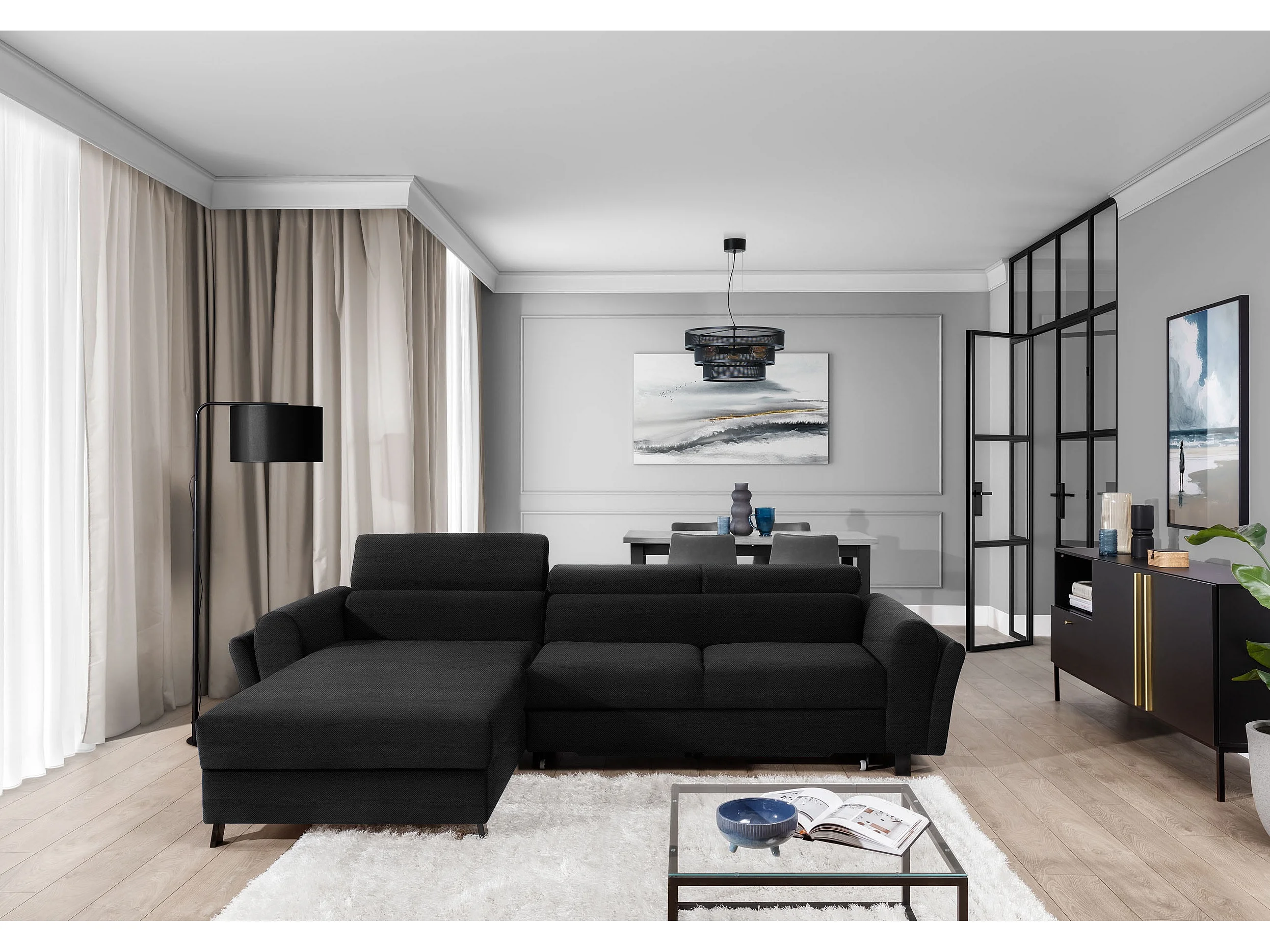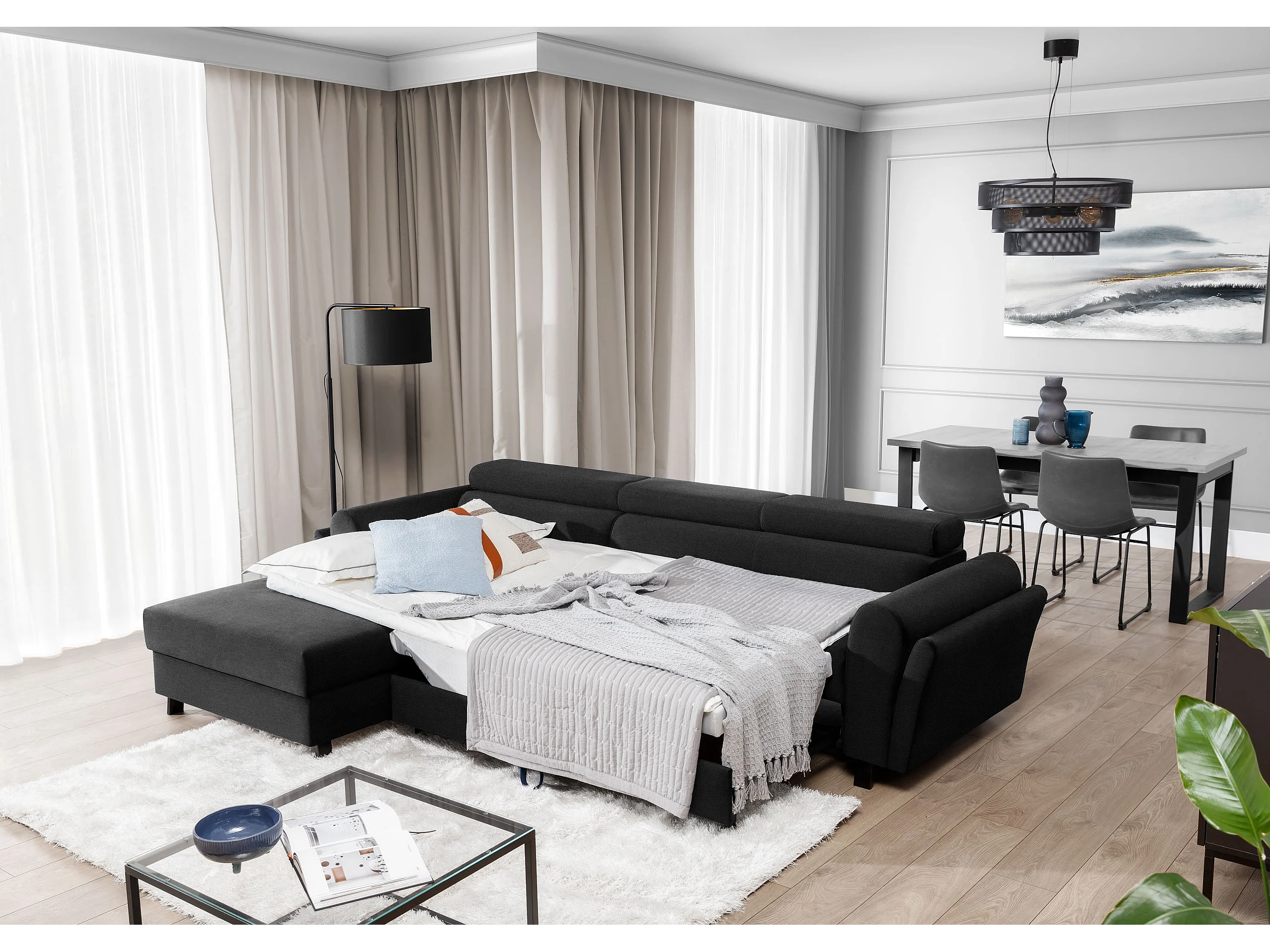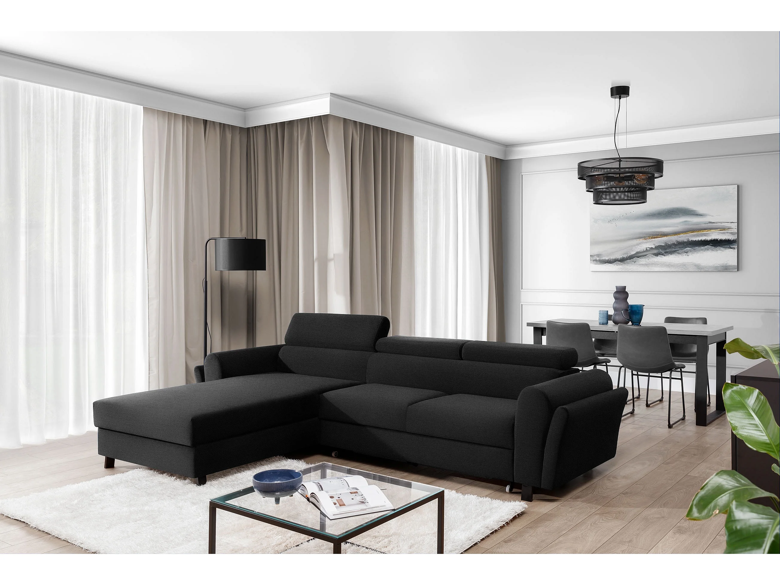 Converteerbare hoekbank links in donkergrijze stof met verstelbare hoofdsteunen Mazerali 300 cm