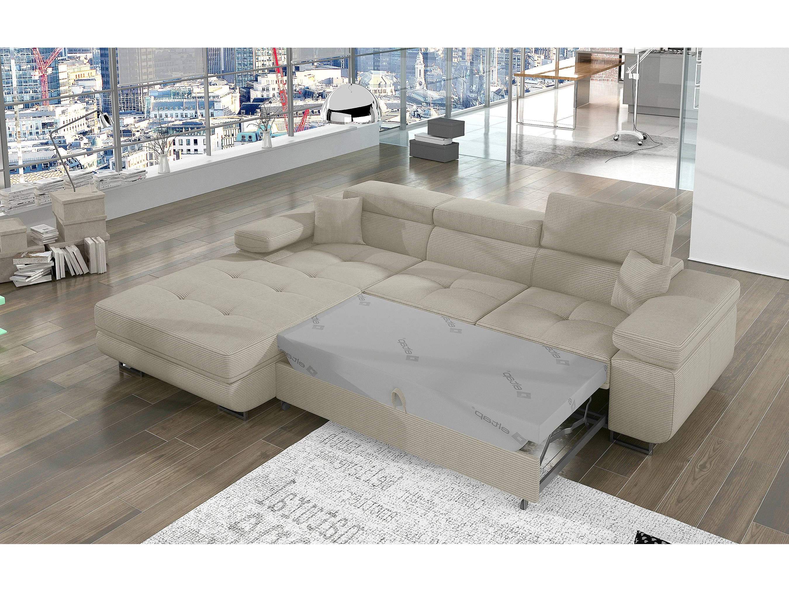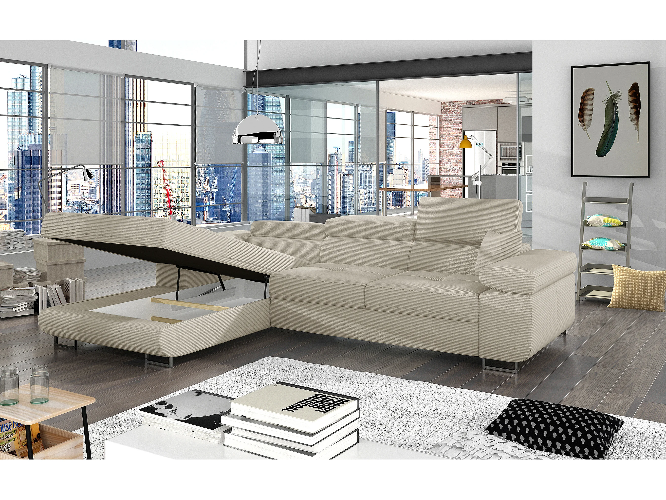 Hoekbank in stof Kalizo met verstelbare hoofdsteunen - Converteerbaar en kofferbak-Kleur Zwart-linkerhoek