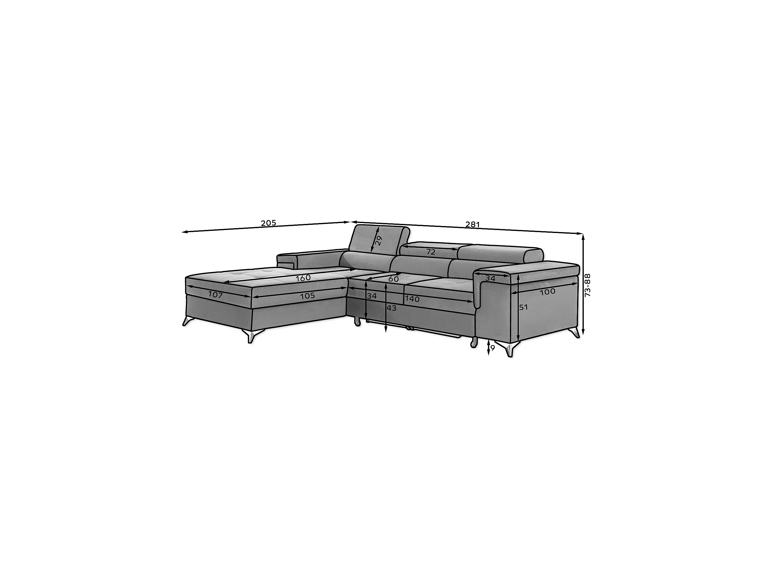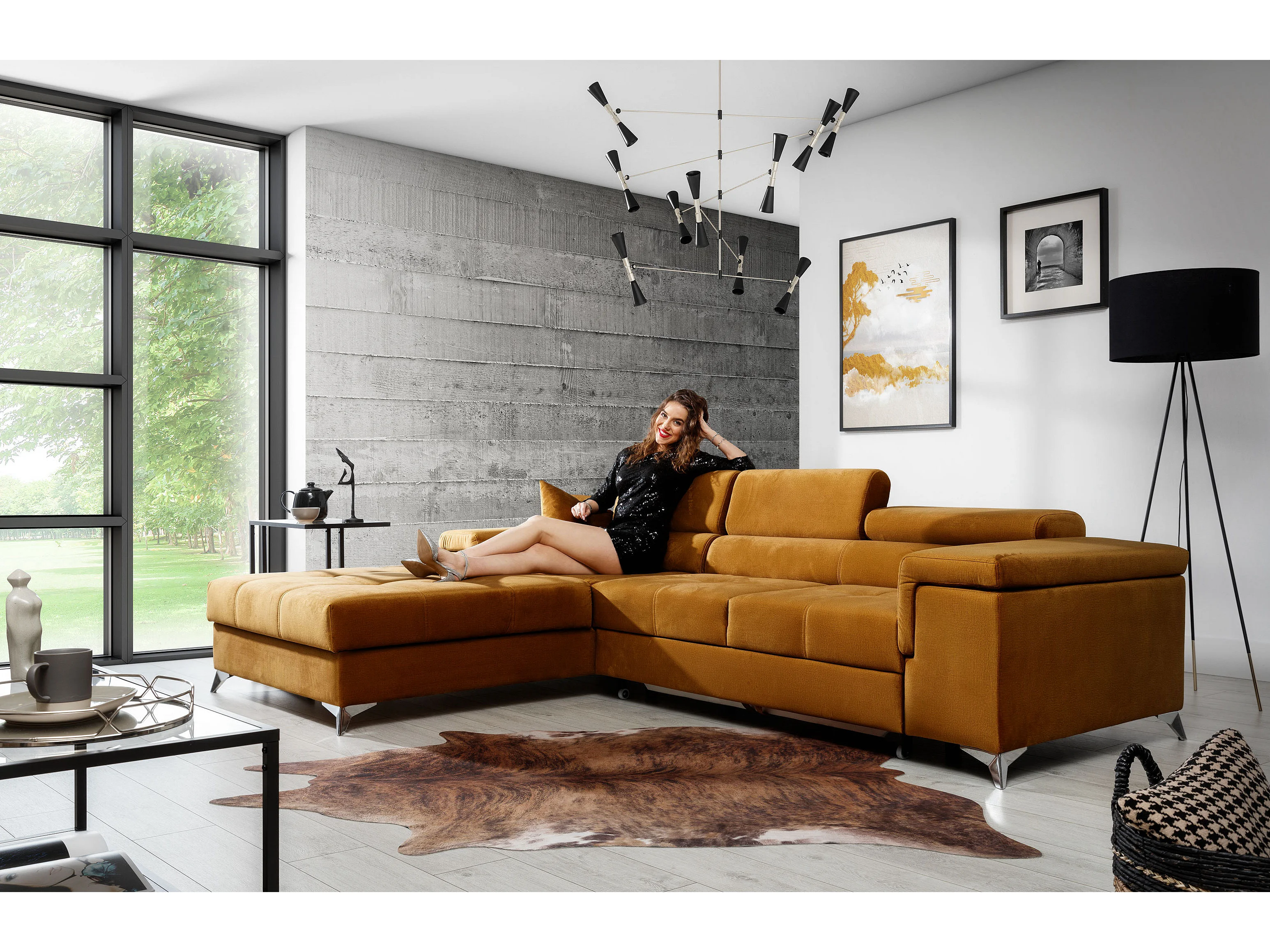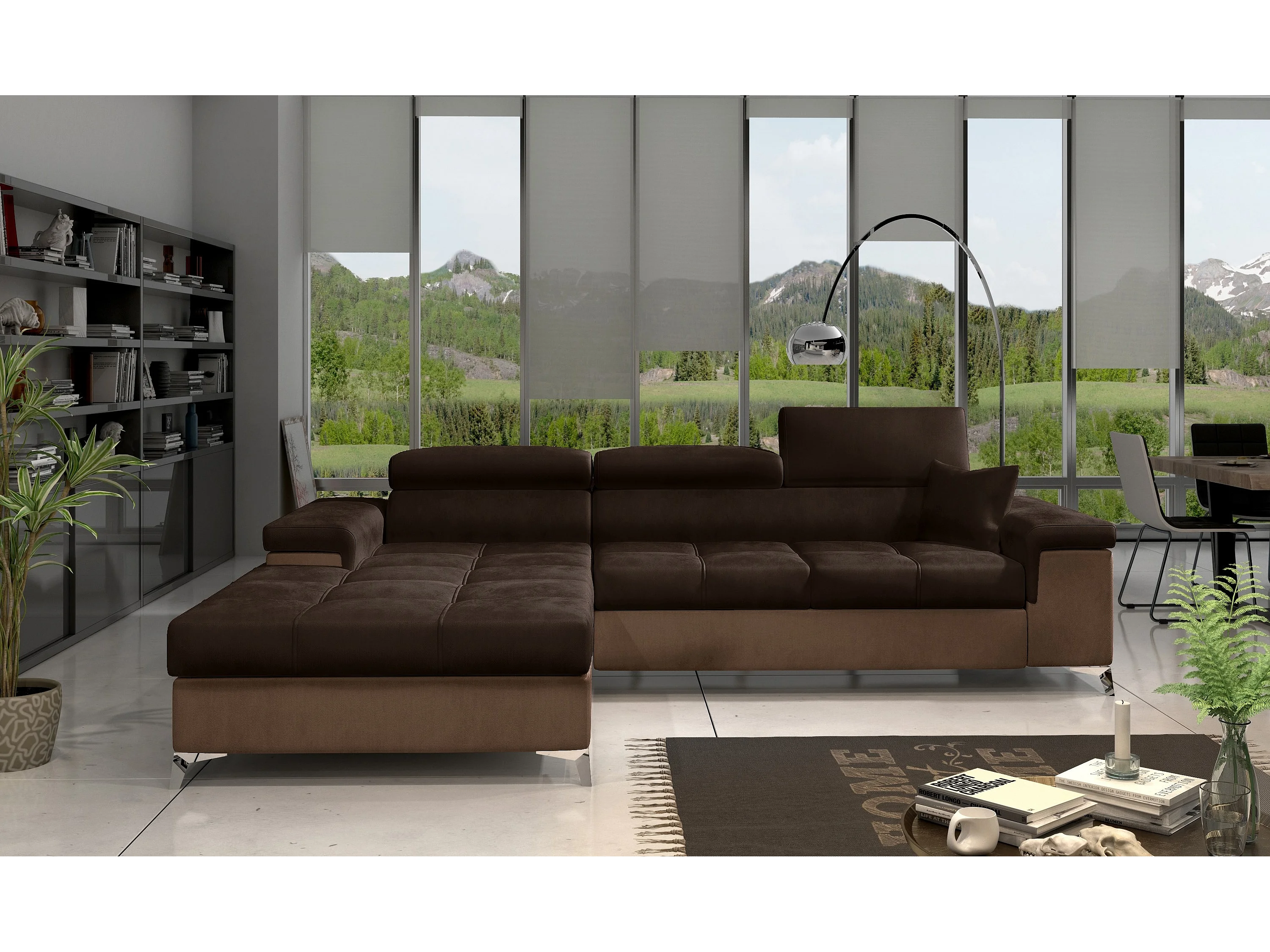 Fluwelen converteerbare hoekbank met verstelbare hoofdsteunen Rikaro 280 cm-Kleur -linkerhoek