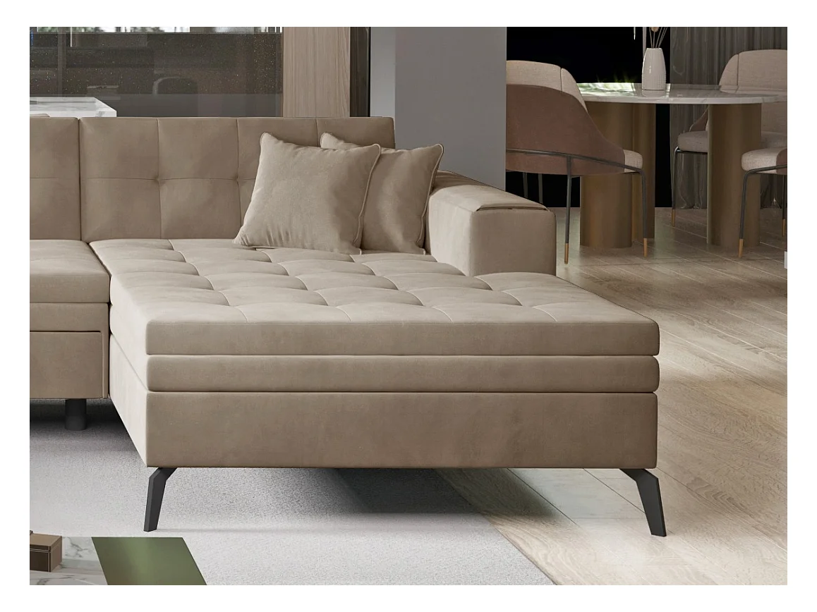 Converteerbare gewatteerde bank linkerhoek beige stof en zwart metalen poten Lazor 295 cm
